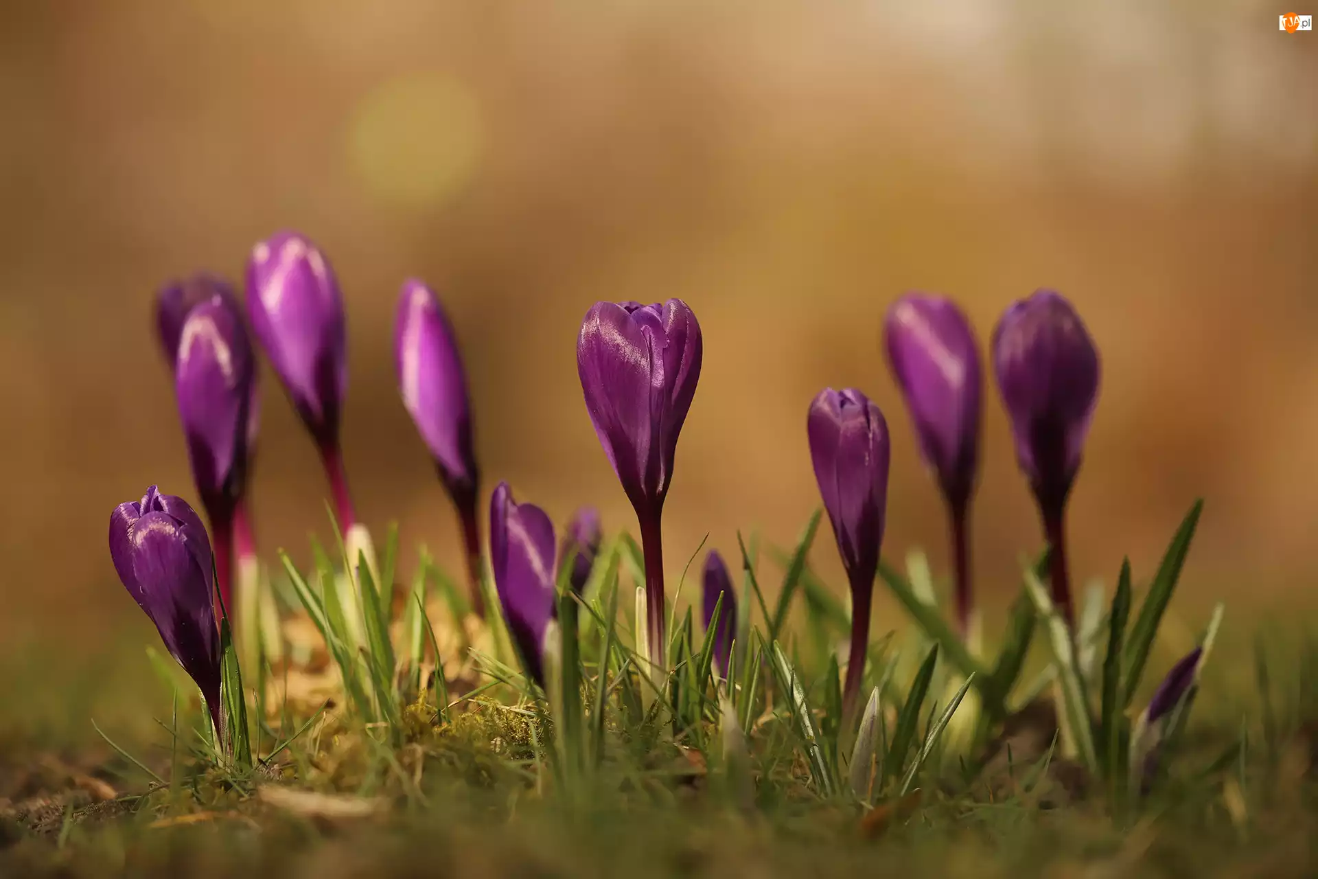 Pąki, Krokusy, Fioletowe, Kwiaty