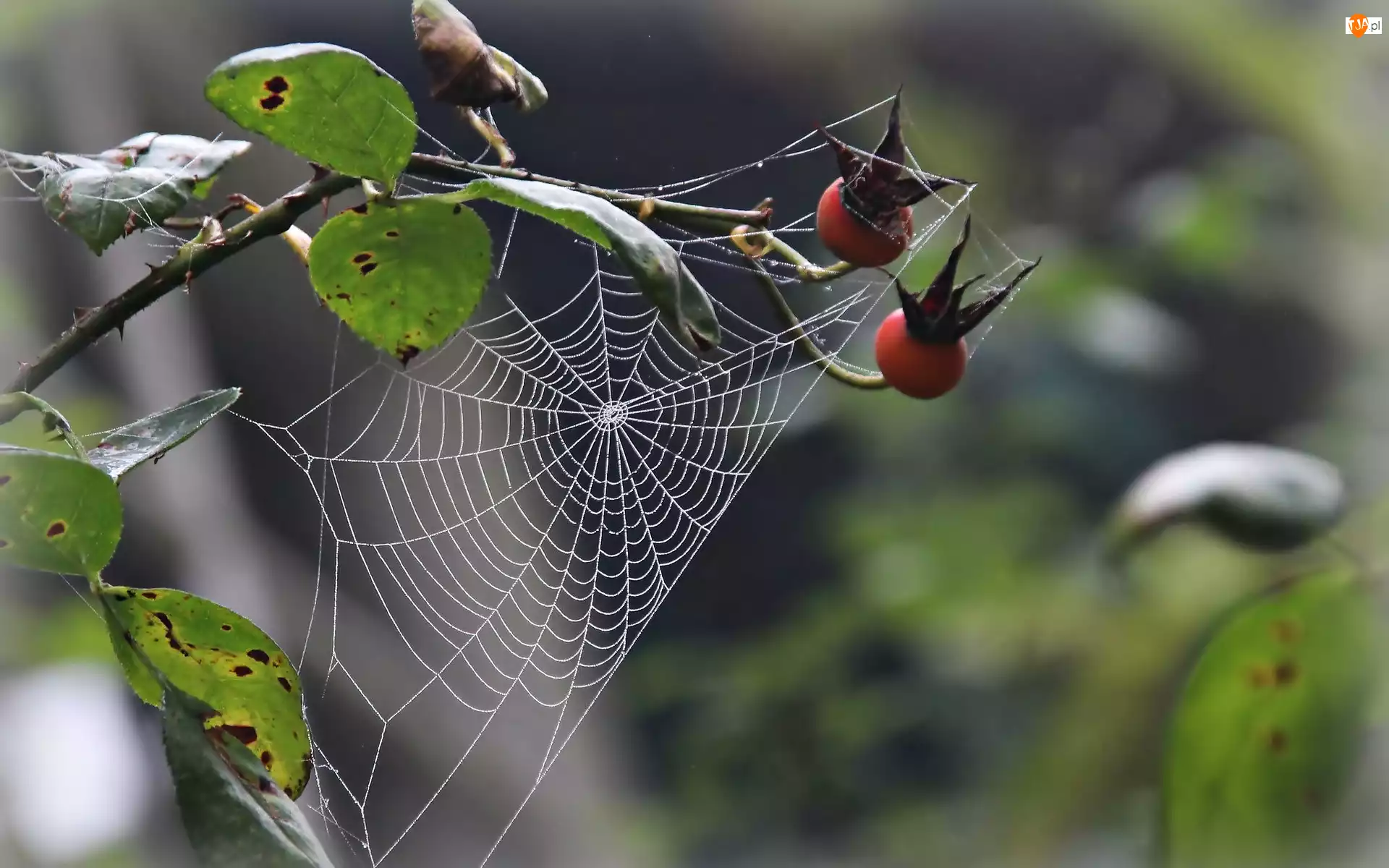 Pajęczyna, Makro, Róża, Dzika, Owoce