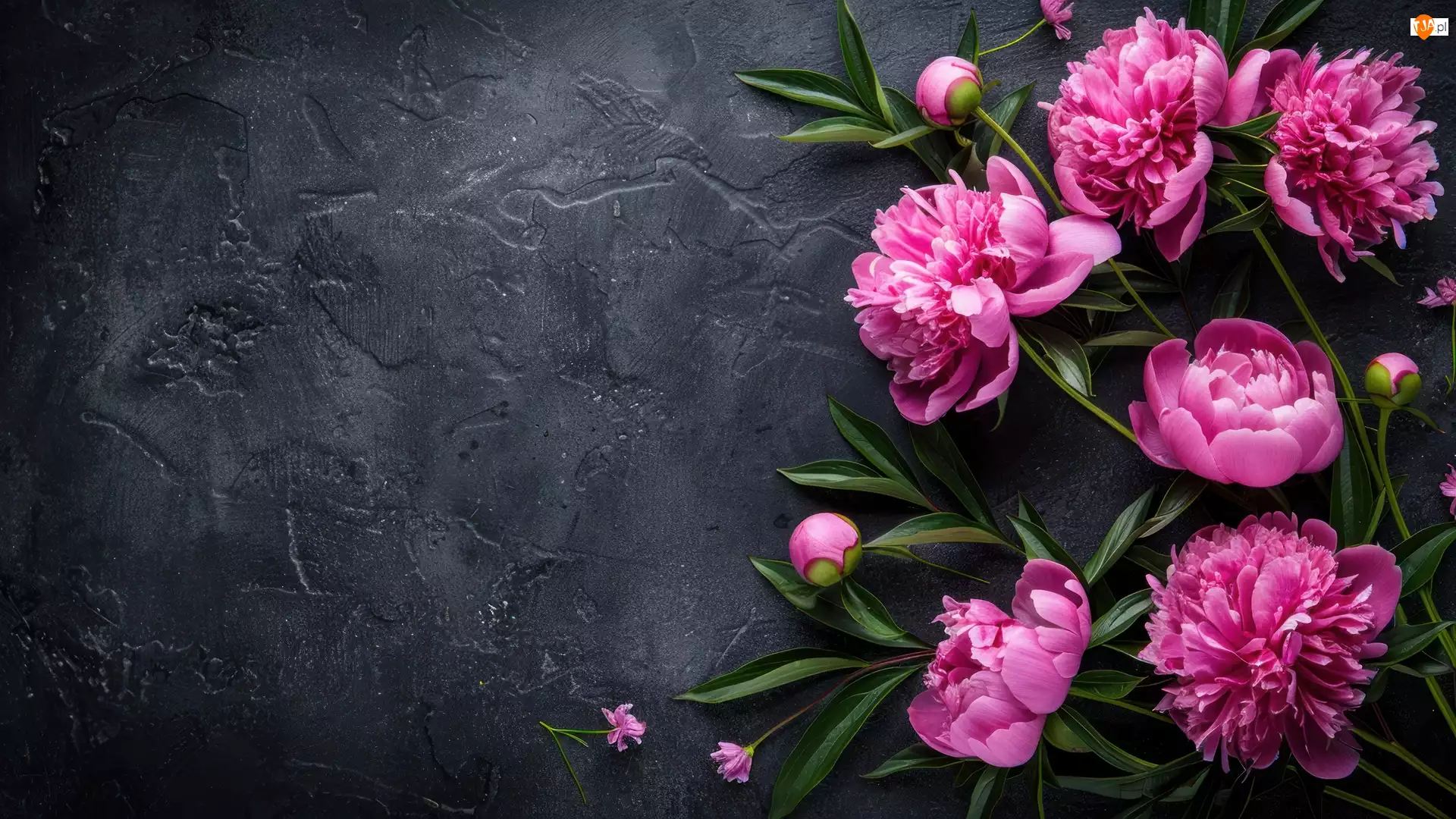 Pąki, Ciemne tło, Piwonie, Różowe, Listki