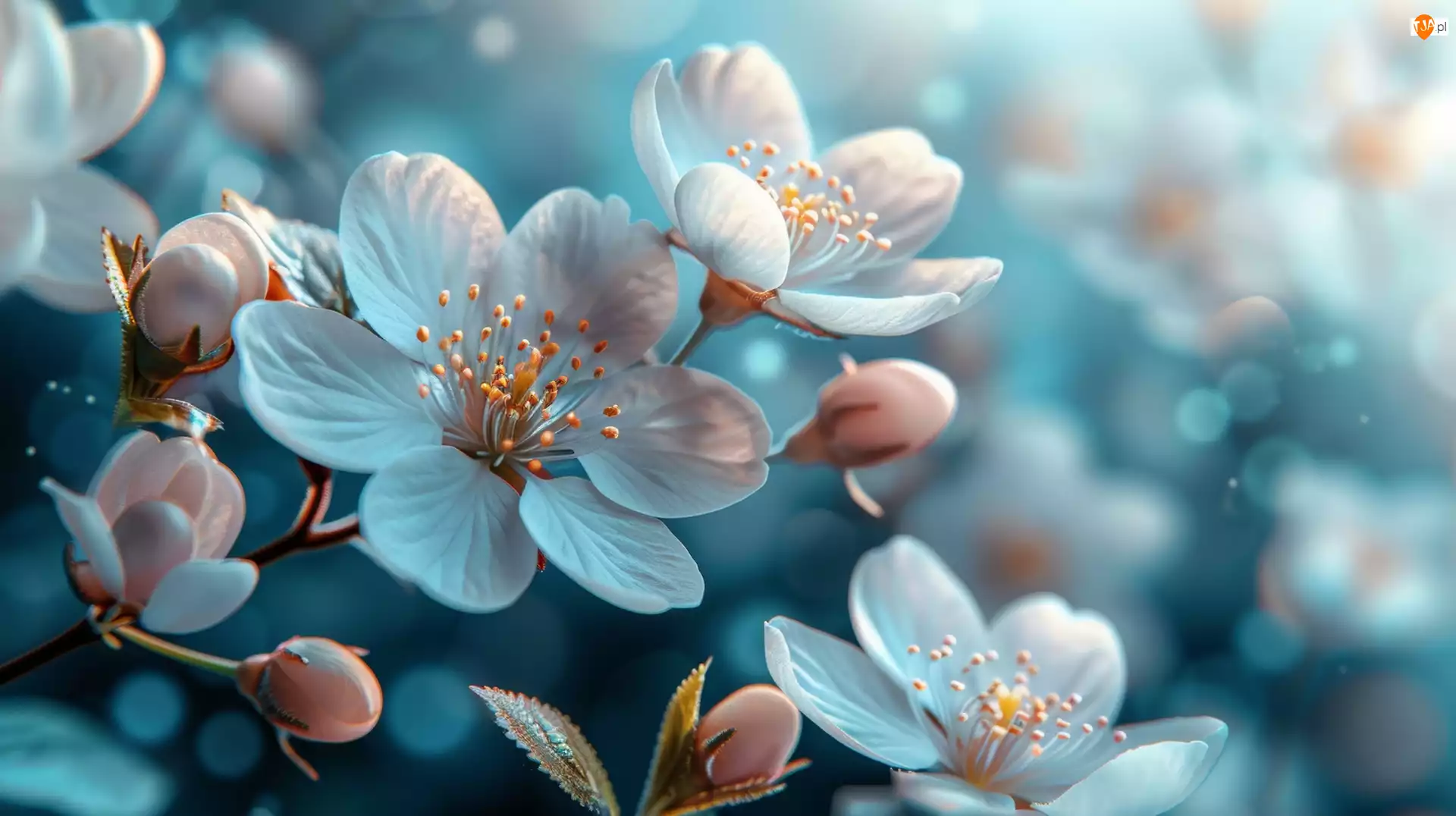 Pąki, Drzewo owocowe, Kwiaty, Białe, Gałęzie