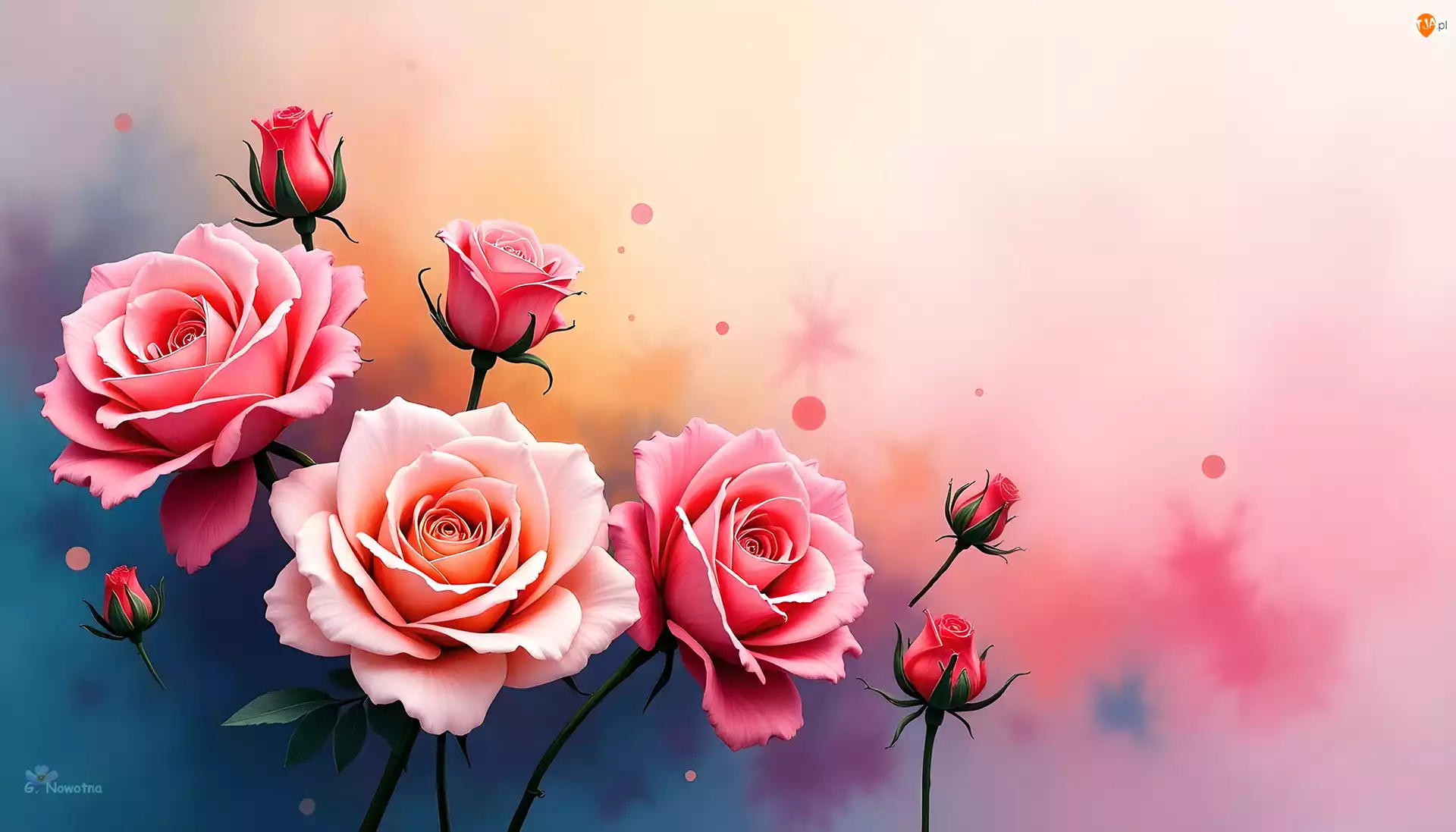 Pąki, Grafika, Róże, Różowe, Kwiaty