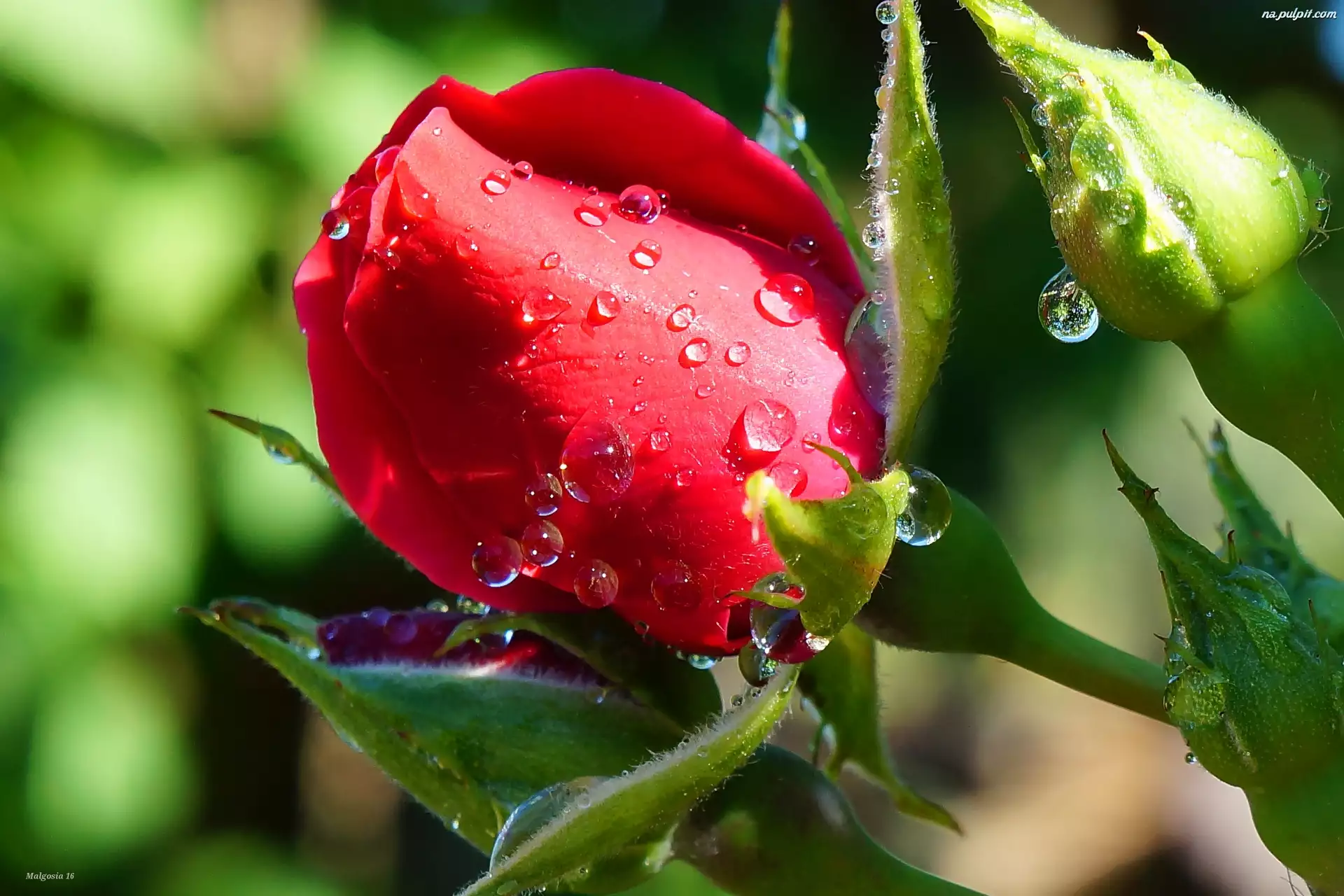 Pąki, Krople, Czerwona, Róża