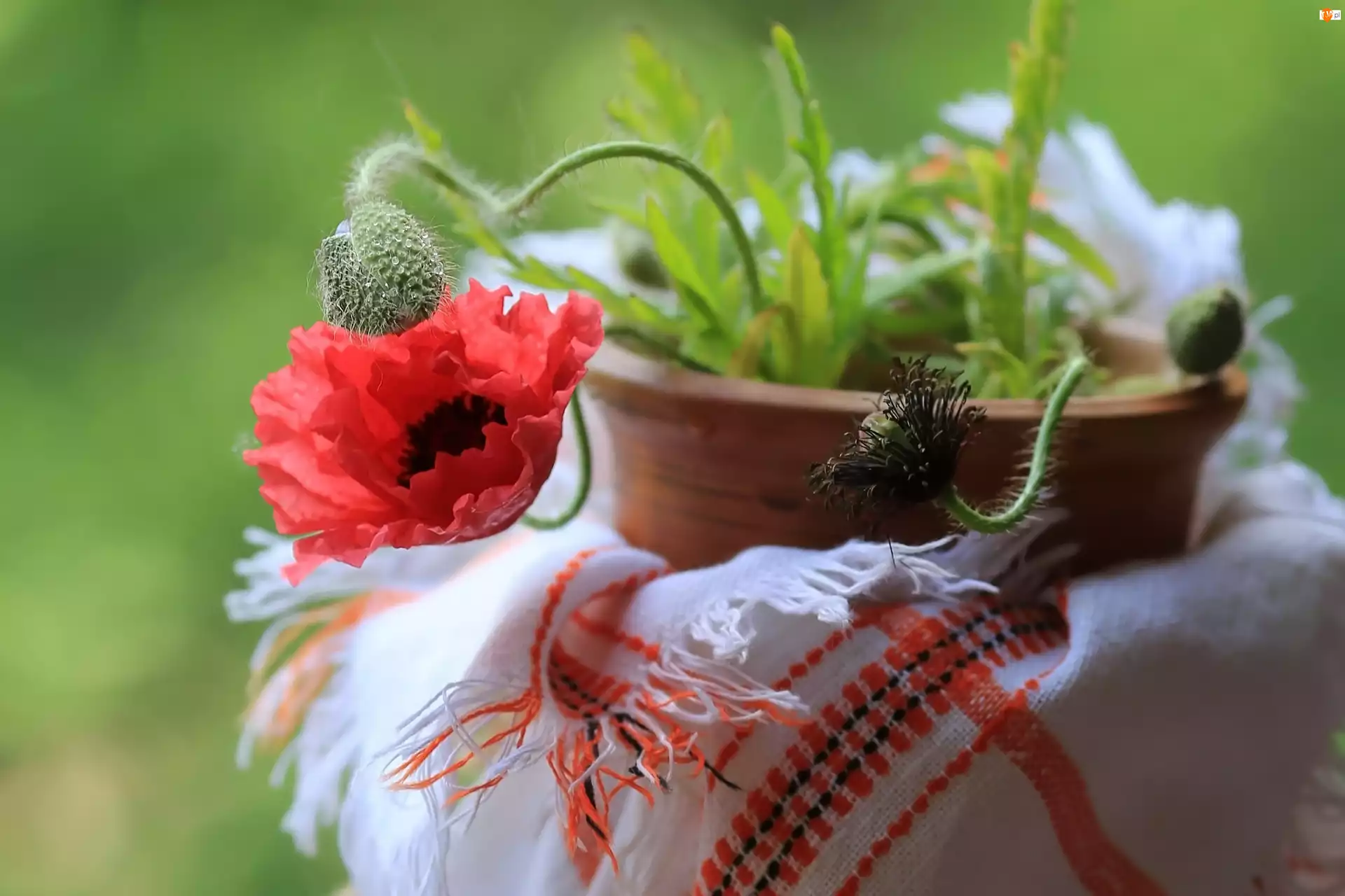 Pąki, Serweta, Maki, Kwiaty, Donica