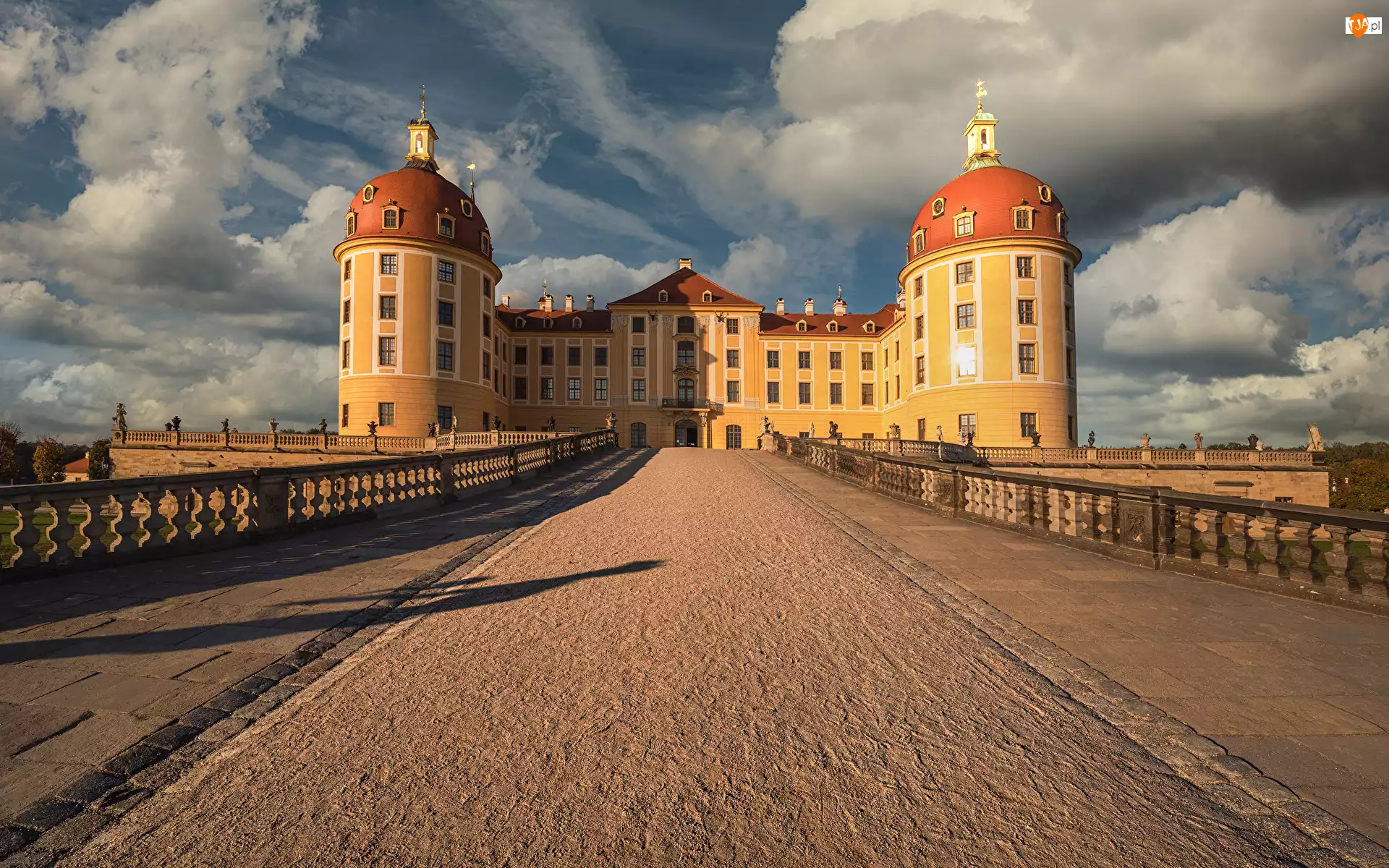 Saksonia, Niemcy, Most, Niebo, Pałac Moritzburg, Zachmurzone
