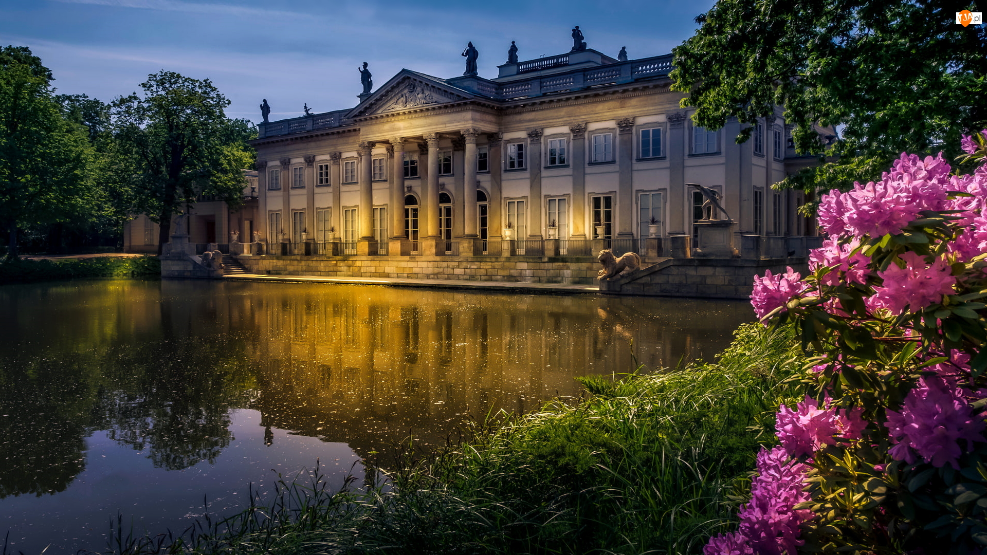 Staw, Pałac Na Wyspie, Łazienki Królewskie, Polska, Różanecznik, Warszawa
