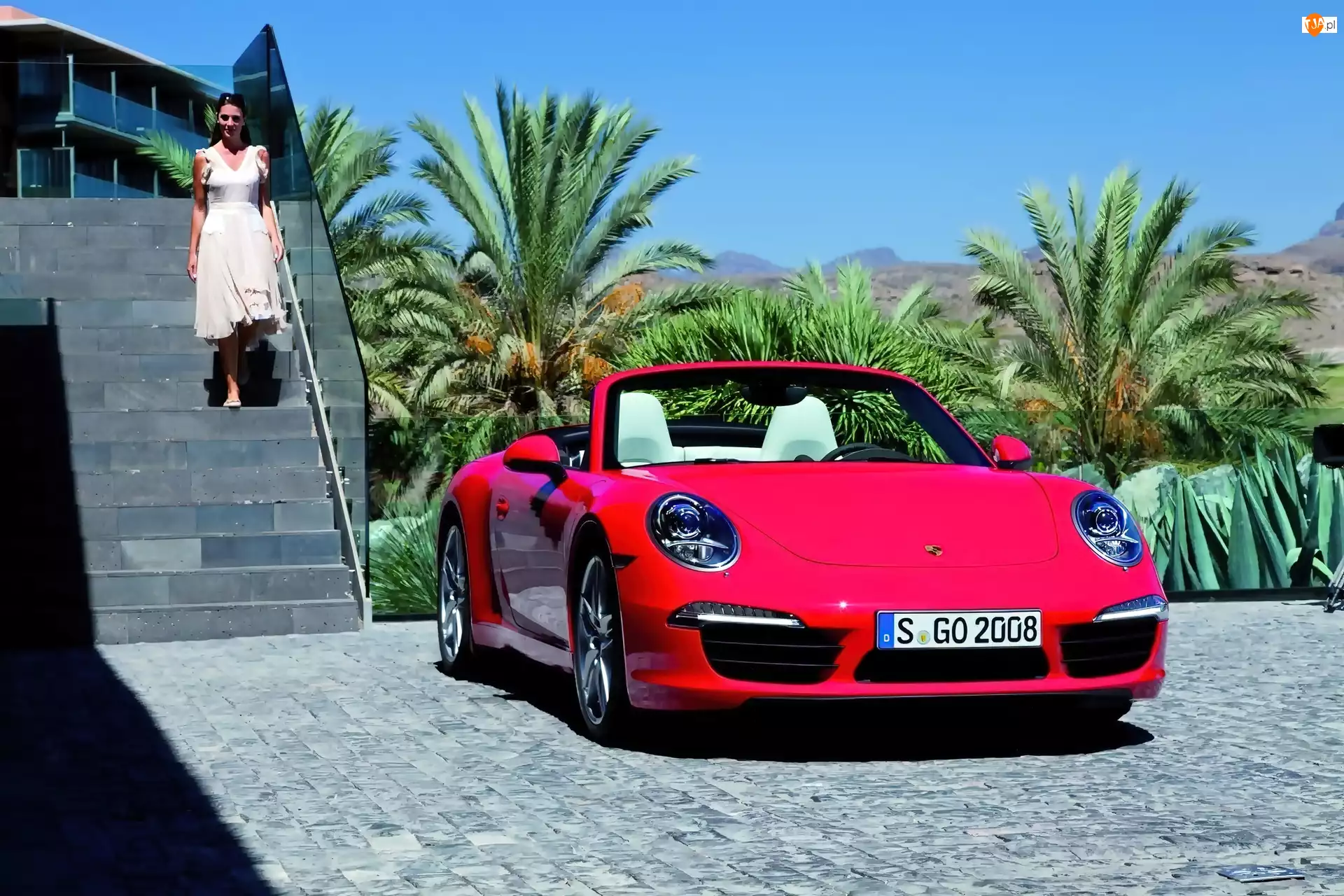Palmy, 911, Budynek, Kabriolet, Kobieta, Porsche