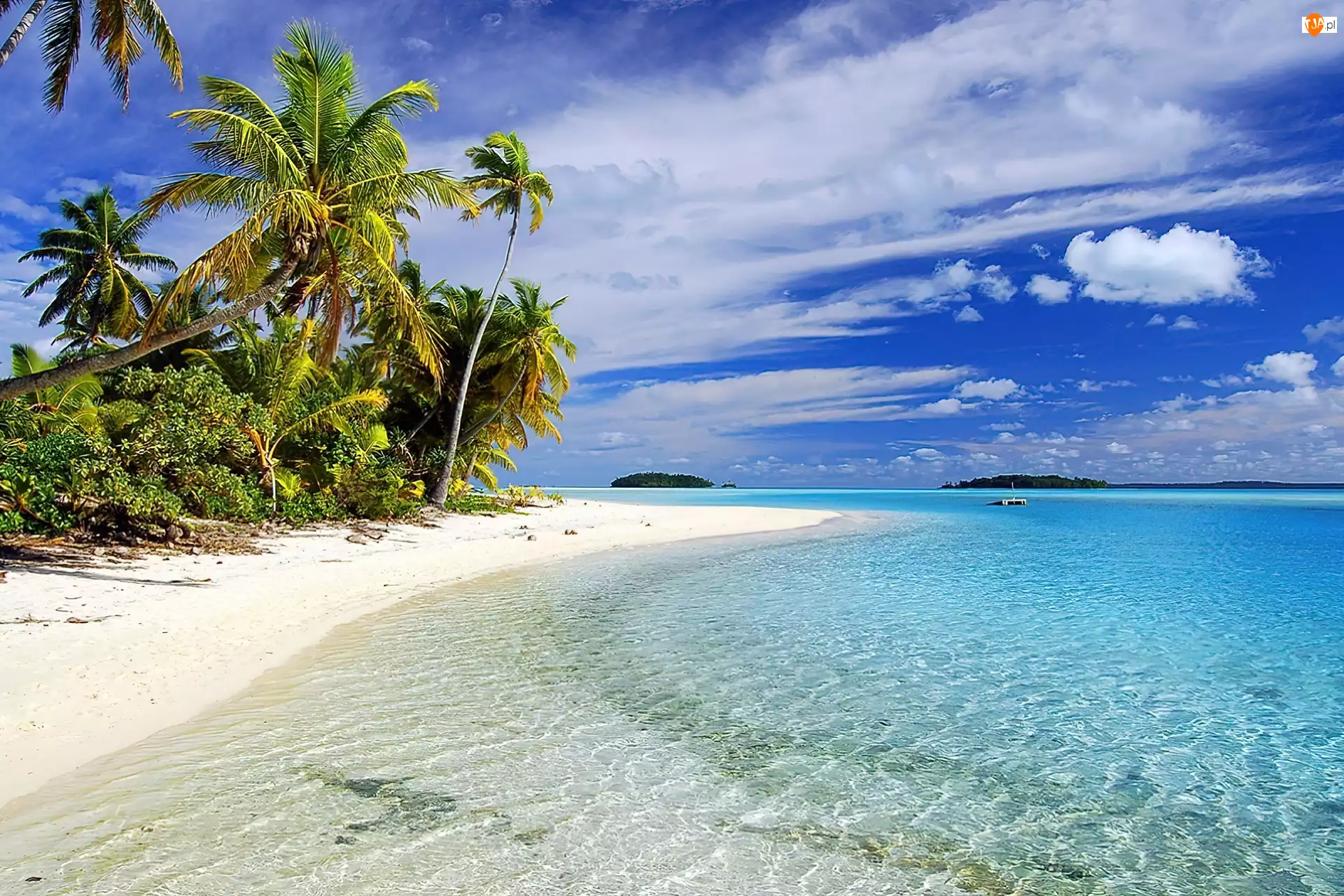 Palmy, Aitutaki, Woda, Islandia, Piasek