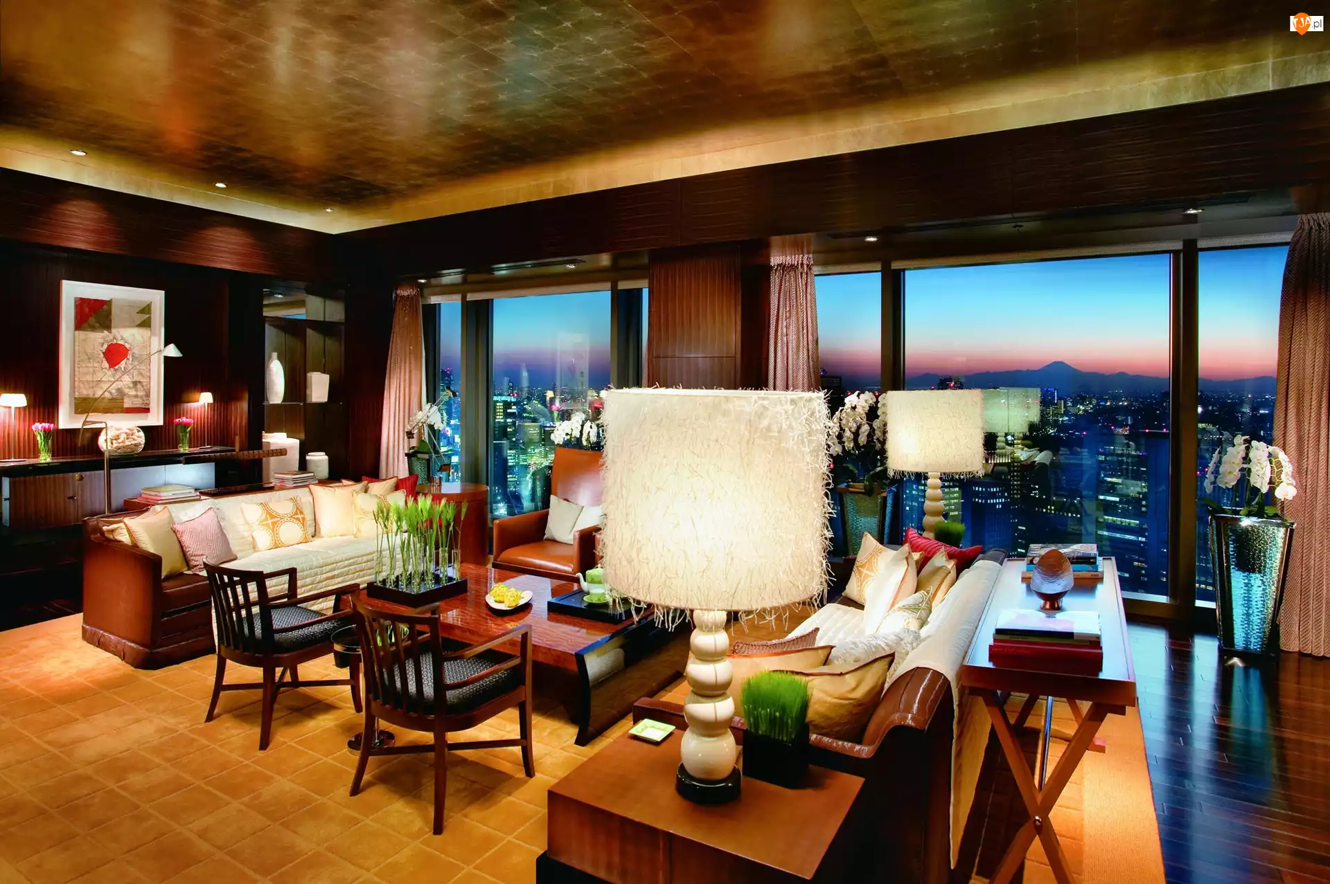 Panorama, Dzienny, Lampy, Pokój, Okna