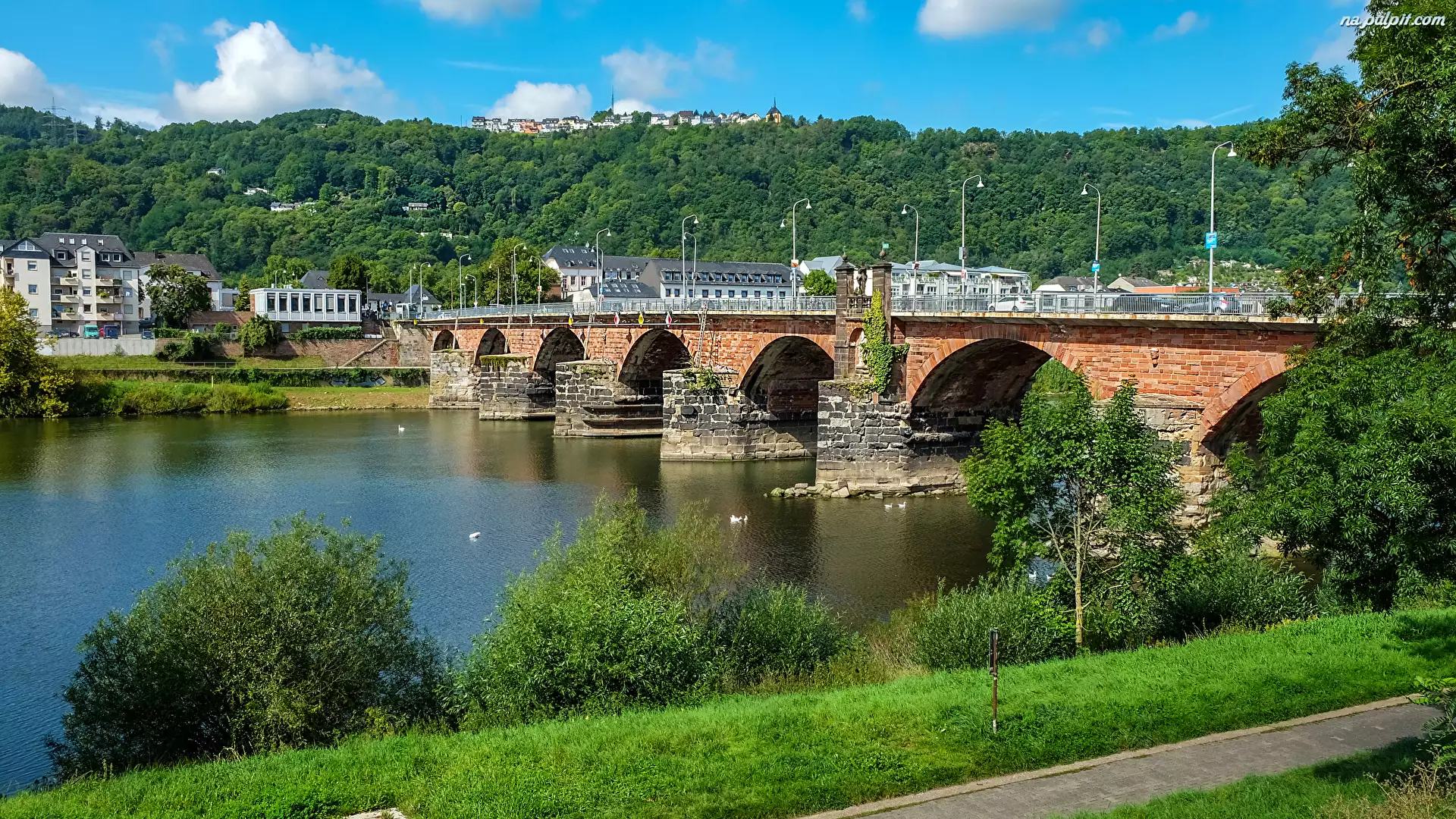 Rzeka Mozela, Domy, Miasto Trewir, Niemcy, Most rzymski