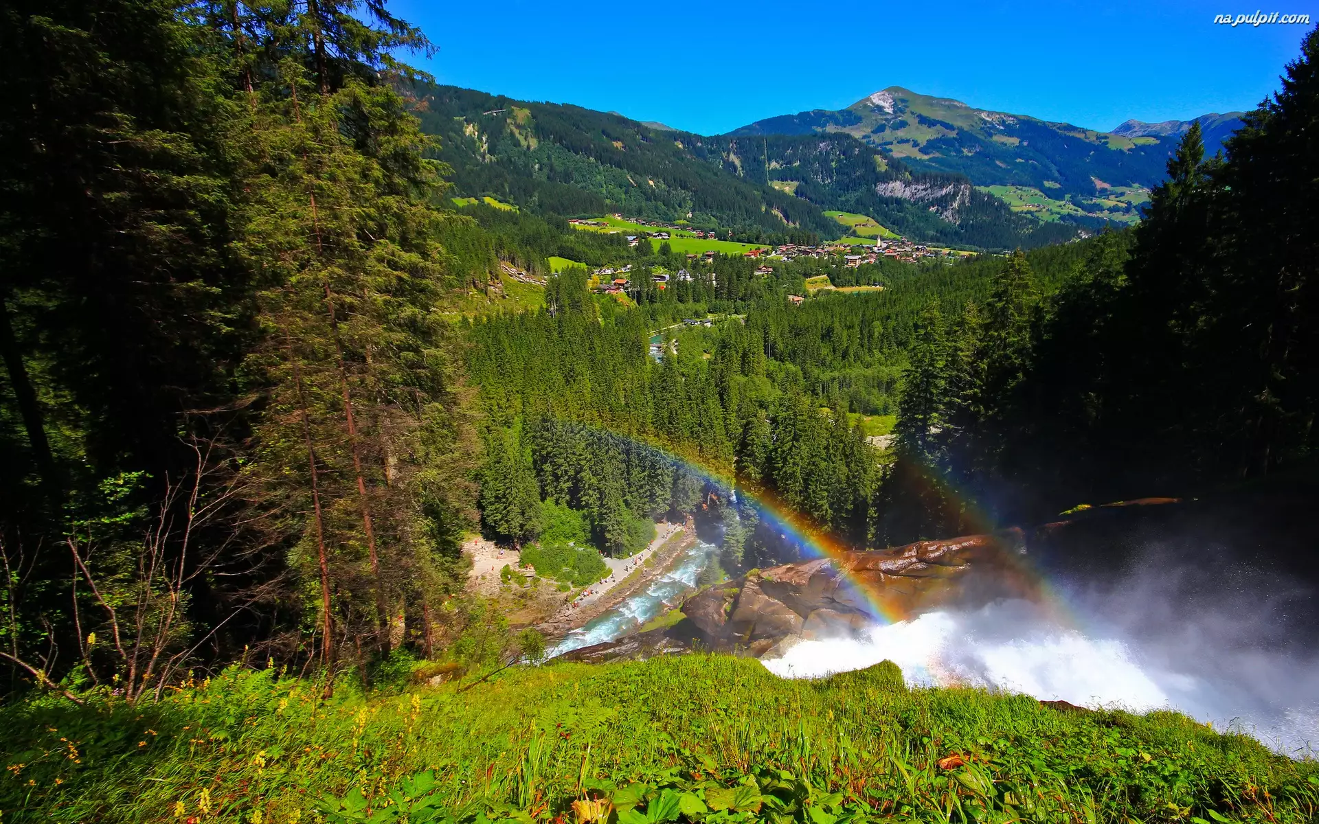 Panorama, Tęcza, Lasy, Góry, Rzeka