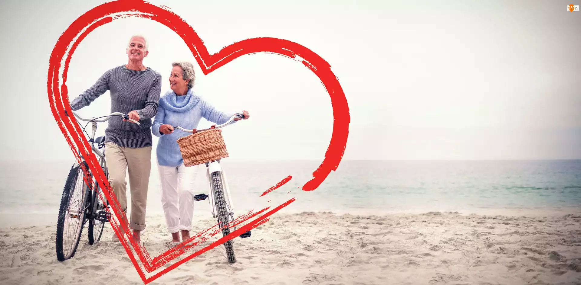 Para z rowerami na plaży w sercu