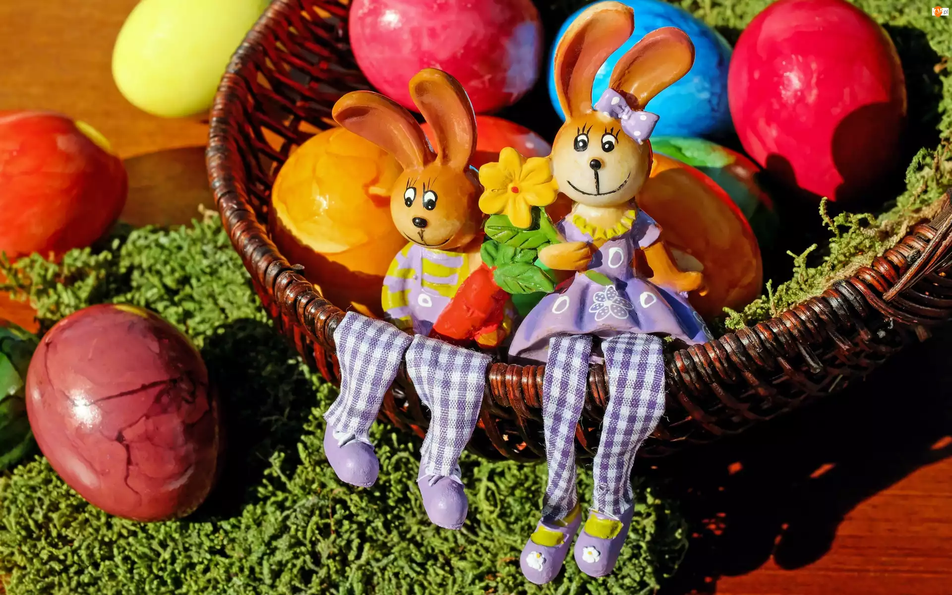 Zajączki, Dekoracyjne, Pisanki, Wielkanoc, Kolorowe, Koszyk