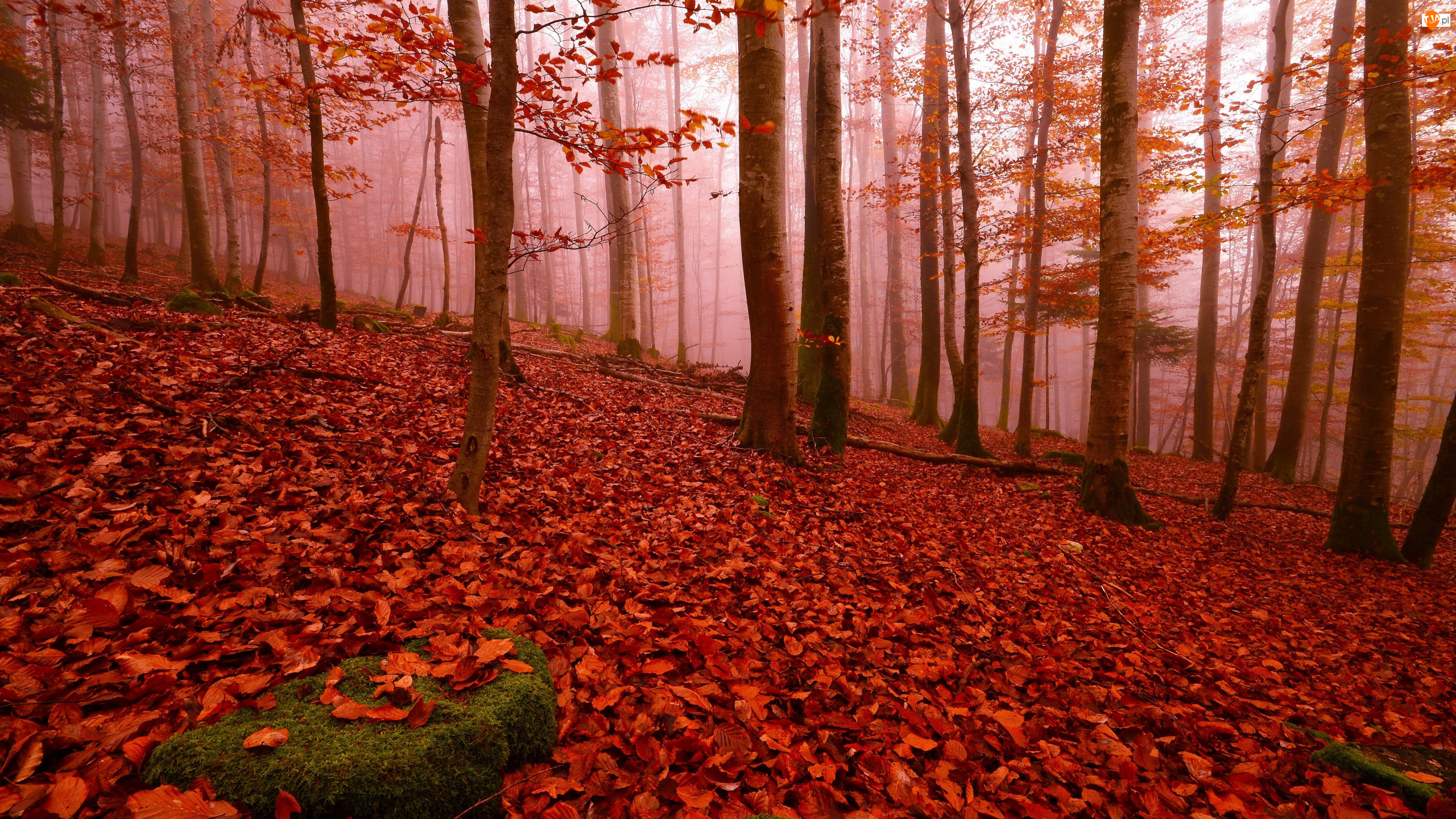 Park, Jesień, Opadłe, Liście, Drzewa, Czerwone