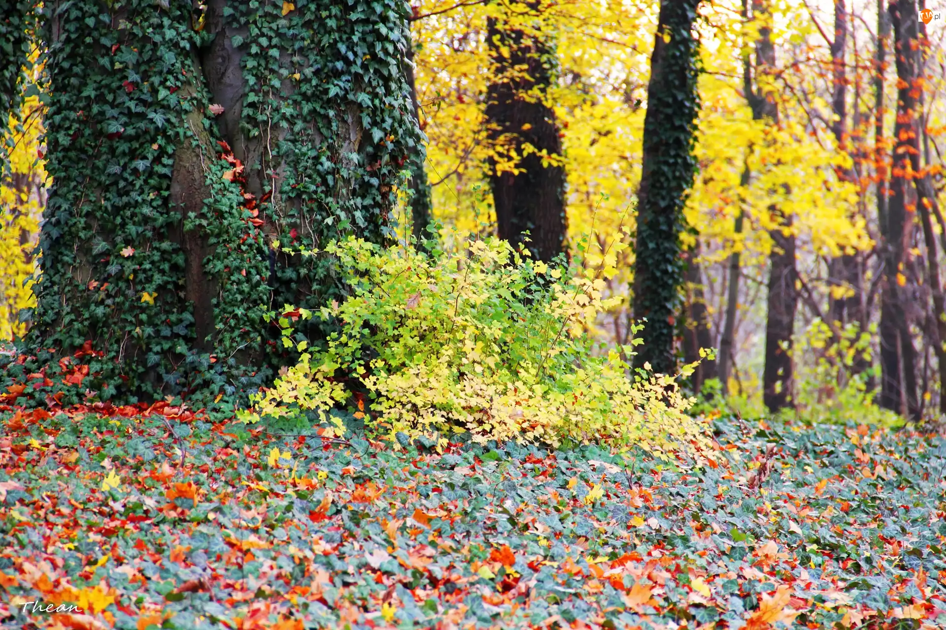 Park, Jesienne, Bluszcz, Liście, Drzewa