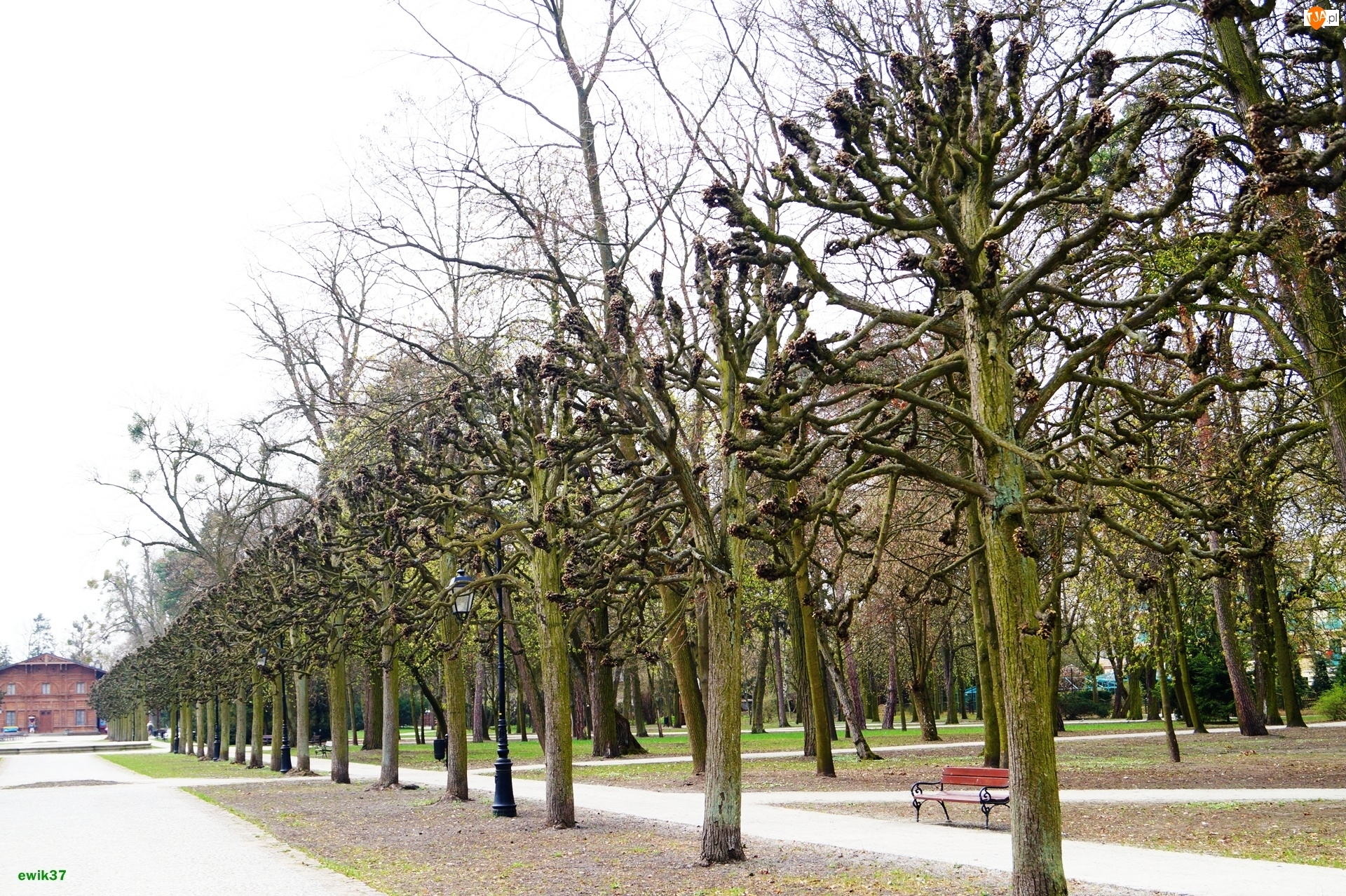 Park, Ławka, Ciechocinek, Park, Budynek, Drzewa