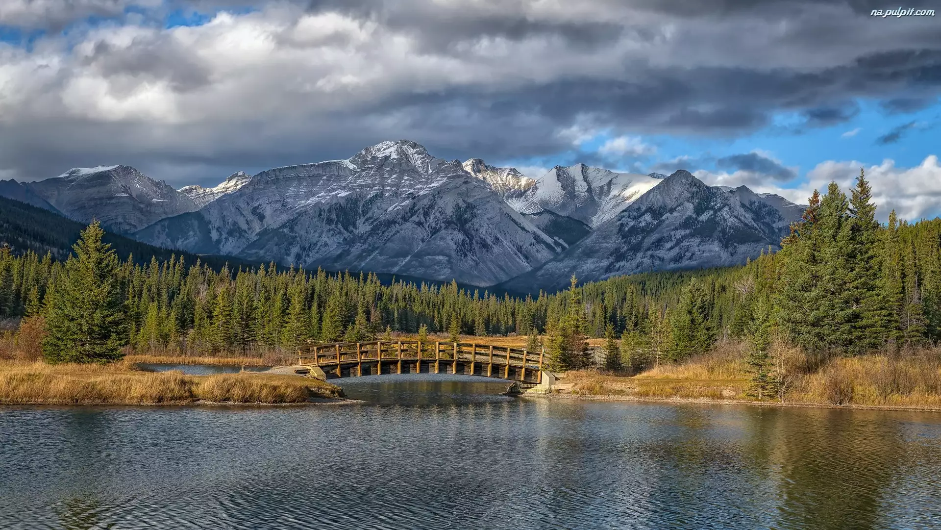 Park Narodowy Banff, Góry, Most, Prowincja Alberta, Jezioro, Drzewa, Kanada, Herbert Lake
