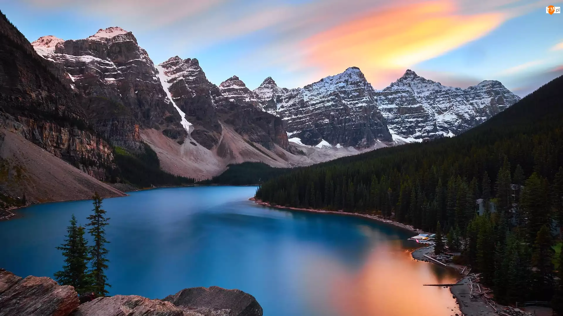 Park Narodowy Banff, Jezioro, Lasy, Prowincja Alberta, Moraine Lake, Drzewa, Kanada, Góry