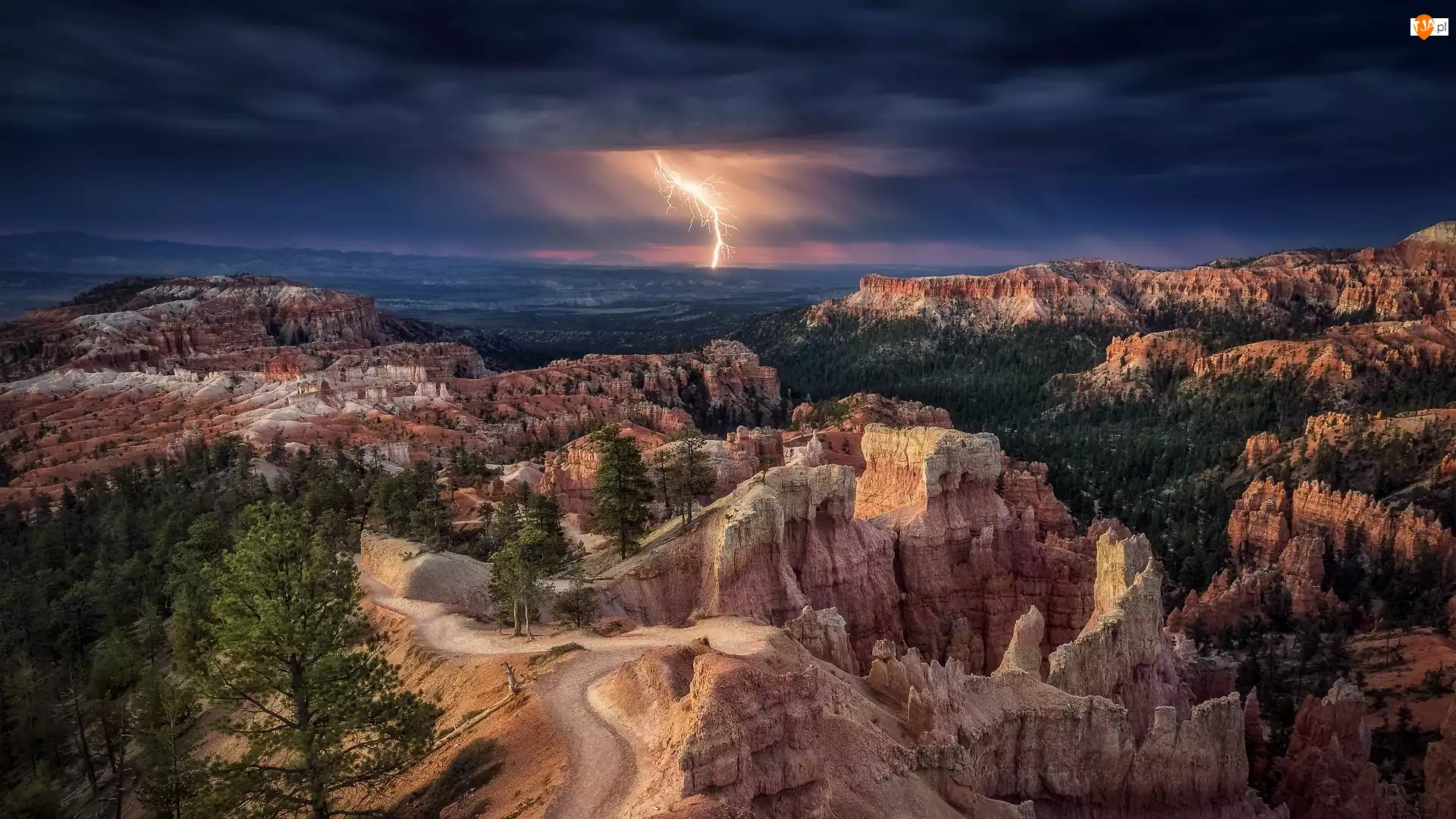 Burza, Kanion, Stan Utah, Stany Zjednoczone, Skały, Park Narodowy Bryce Canyon, Piorun