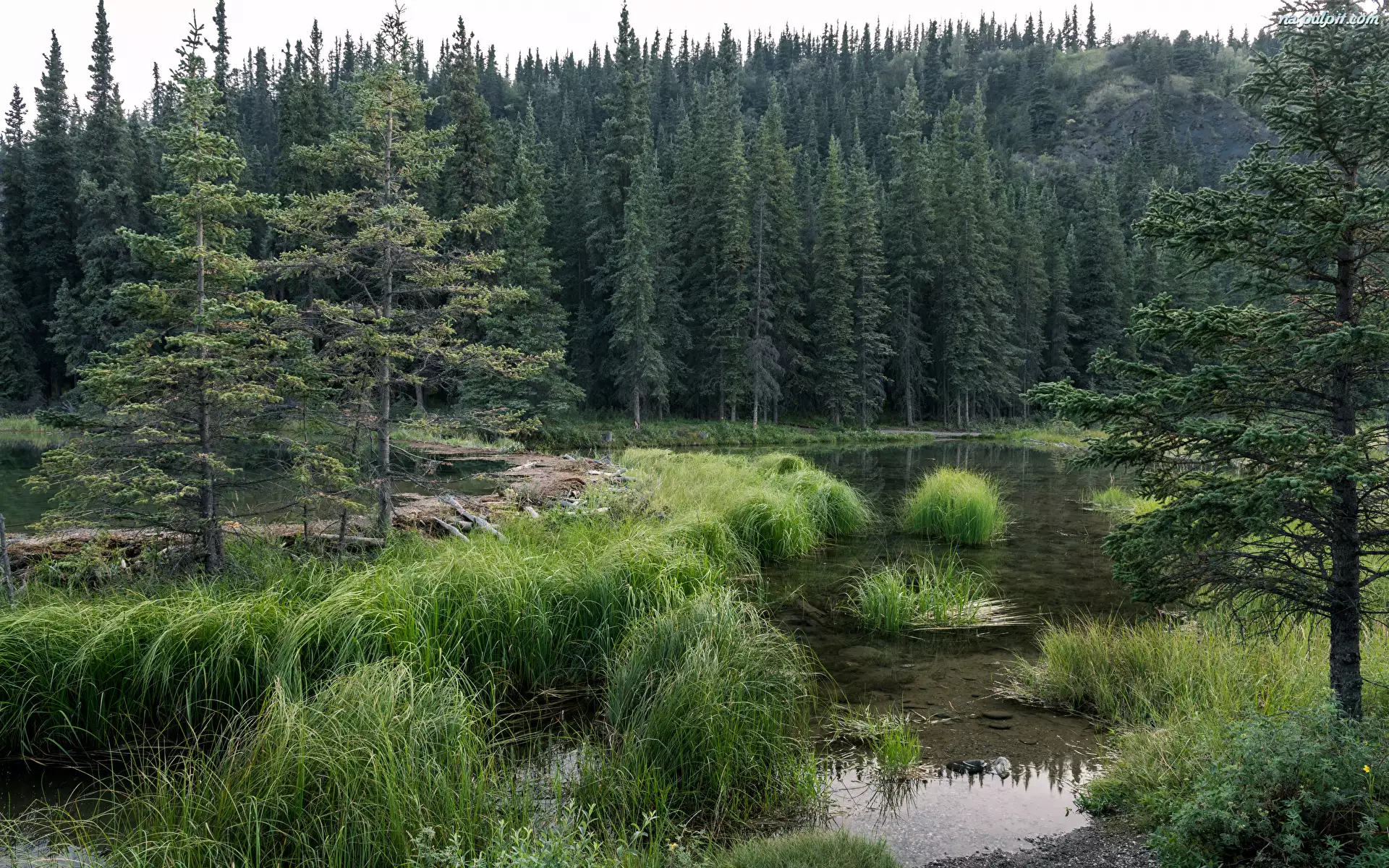 Drzewa, Trawa, Zielone, Jezioro, Lasy