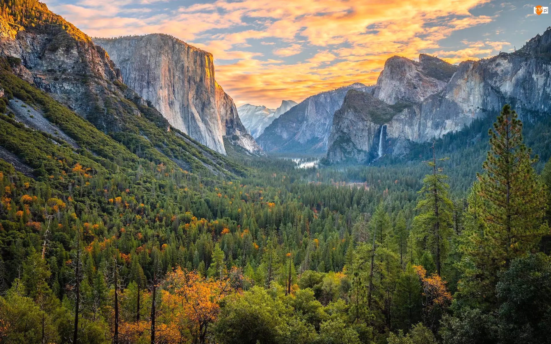 Park Narodowy Yosemite, Drzewa, Kalifornia, Stany Zjednoczone, Góry