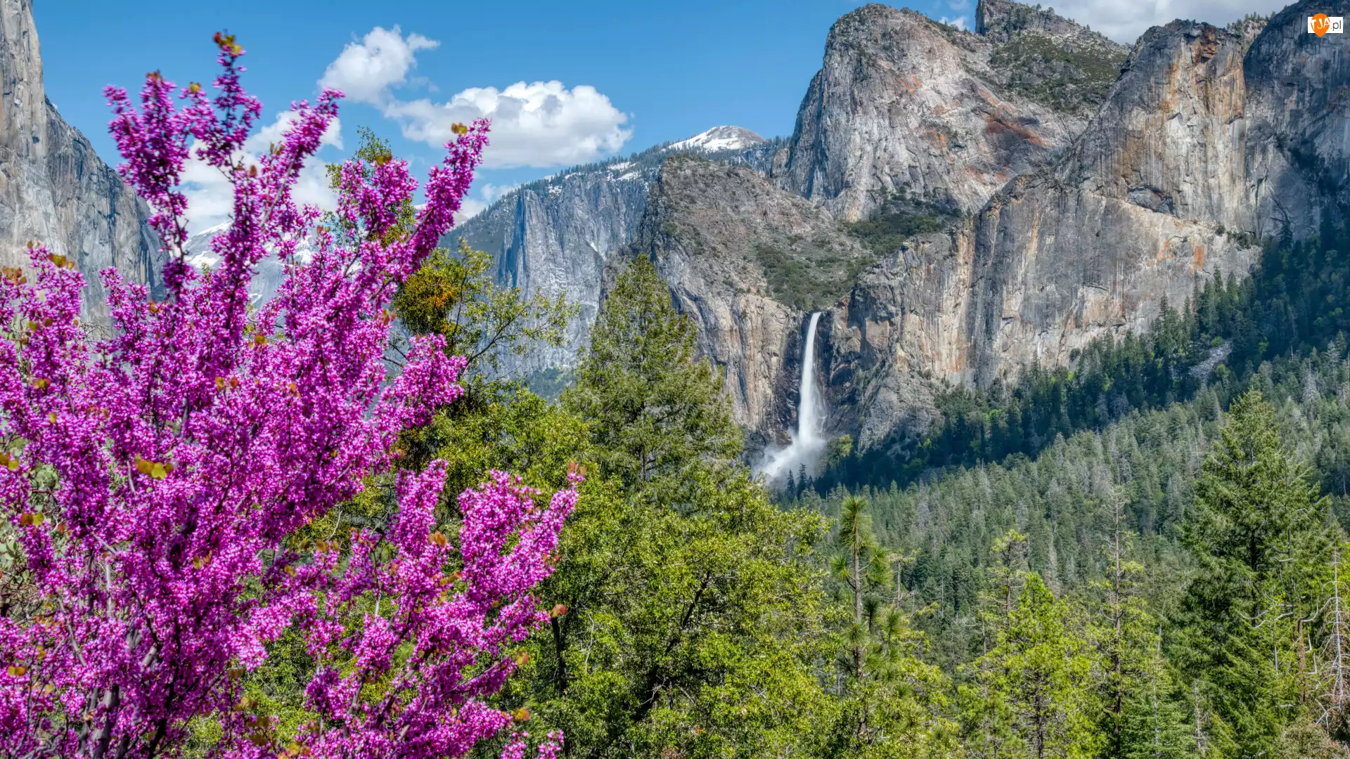 Park Narodowy Yosemite, Drzewa, Wodospad, Kaliforn