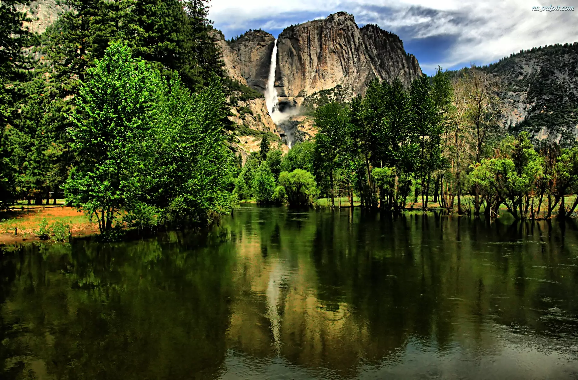 Park Narodowy Yosemite, Góry, Stany Zjednoczone, Jezioro, Stan Kalifornia, Wodospad