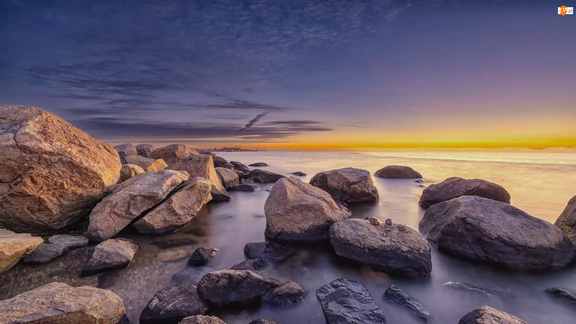 Madison, Wschód słońca, Plaża, Connecticut, Park Stanowy, Kamienie, Stany Zjednoczone, Hammonasset Beach