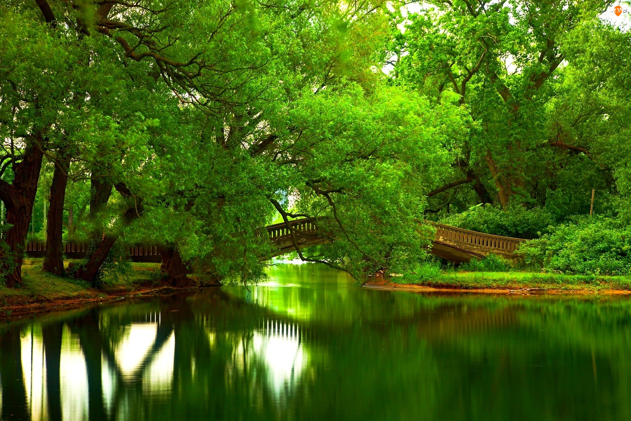 Park, Zieleń, Rzeka, Most