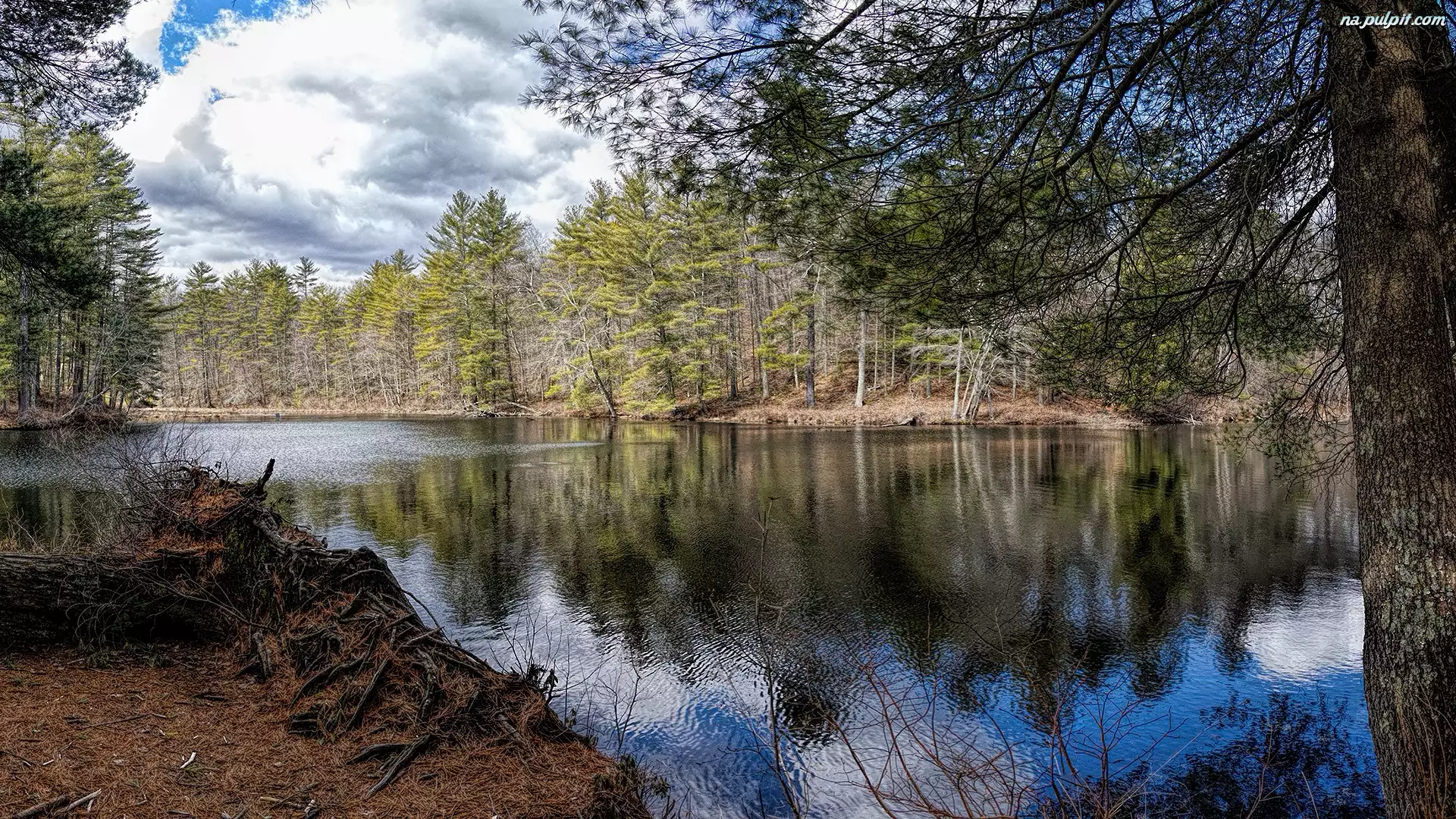 Peppers Mill Pond, Drzewa, Stany Zjednoczone, Jezioro, Massachusetts, Ware, Korzenie