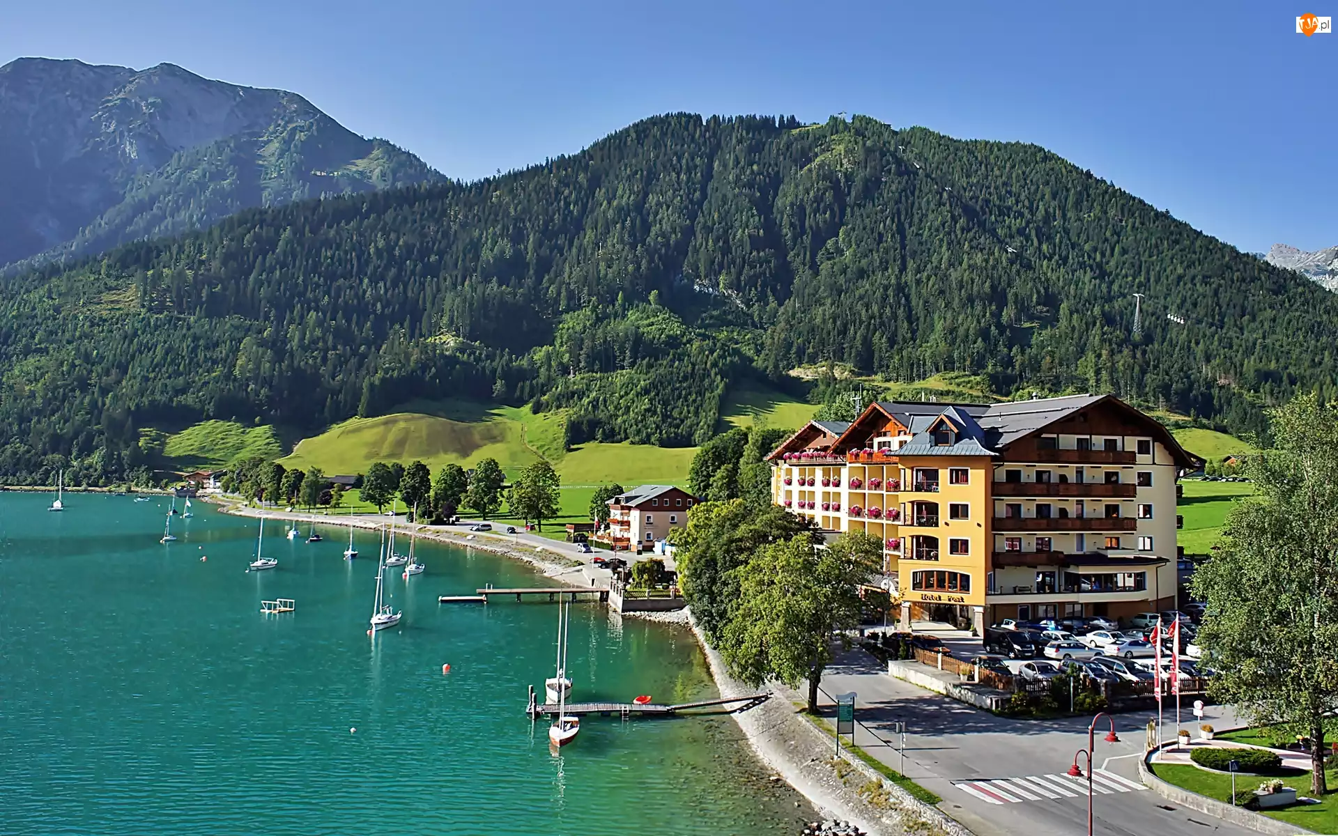 Pertisau, Hotel, Góry, Achensee, Tyrol, Jachty, L