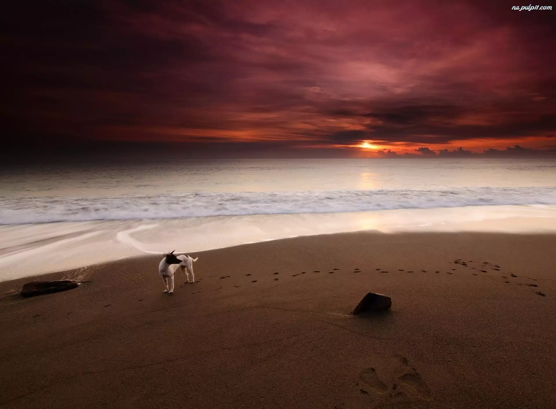 Piasek, Piesek, Morze, Ślady, Plaża, Zachód Słońca