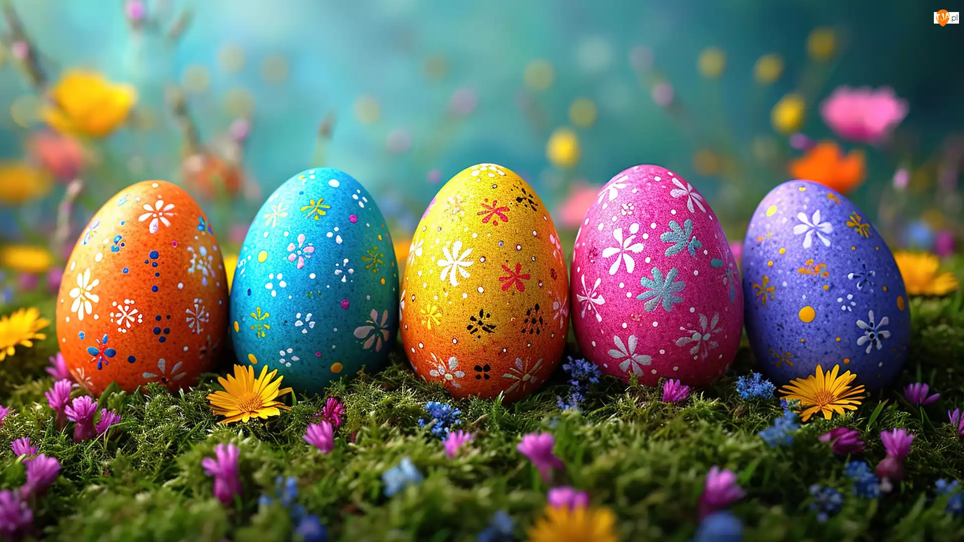 Pisanki, Mech, Kolorowe, Wielkanoc, Kwiaty
