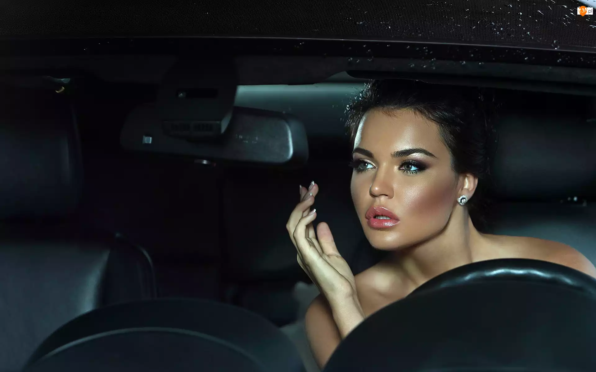 Piękna, Makijaż, Brunetka, Samochód