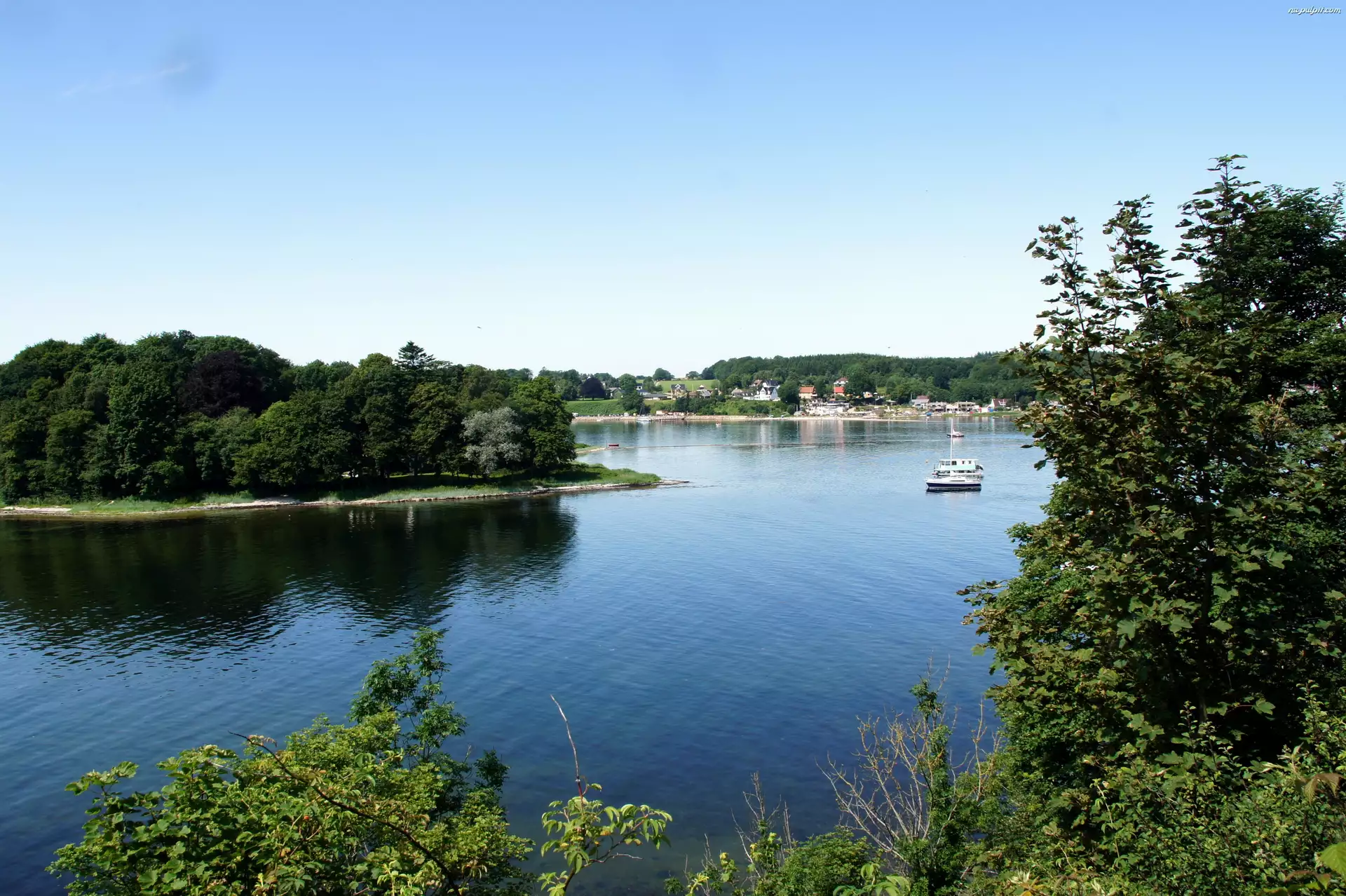 Domy, Piękne, Jezioro, Drzewa