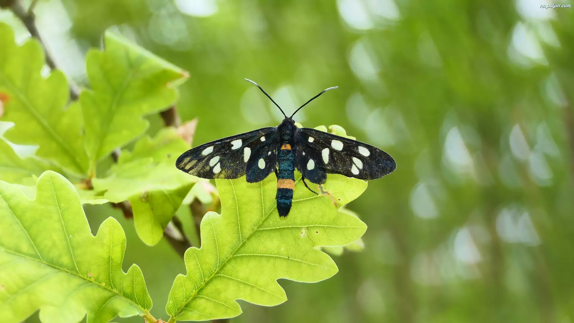 Zielone, Dębu, Motyl, Oblaczek granatek, Liście