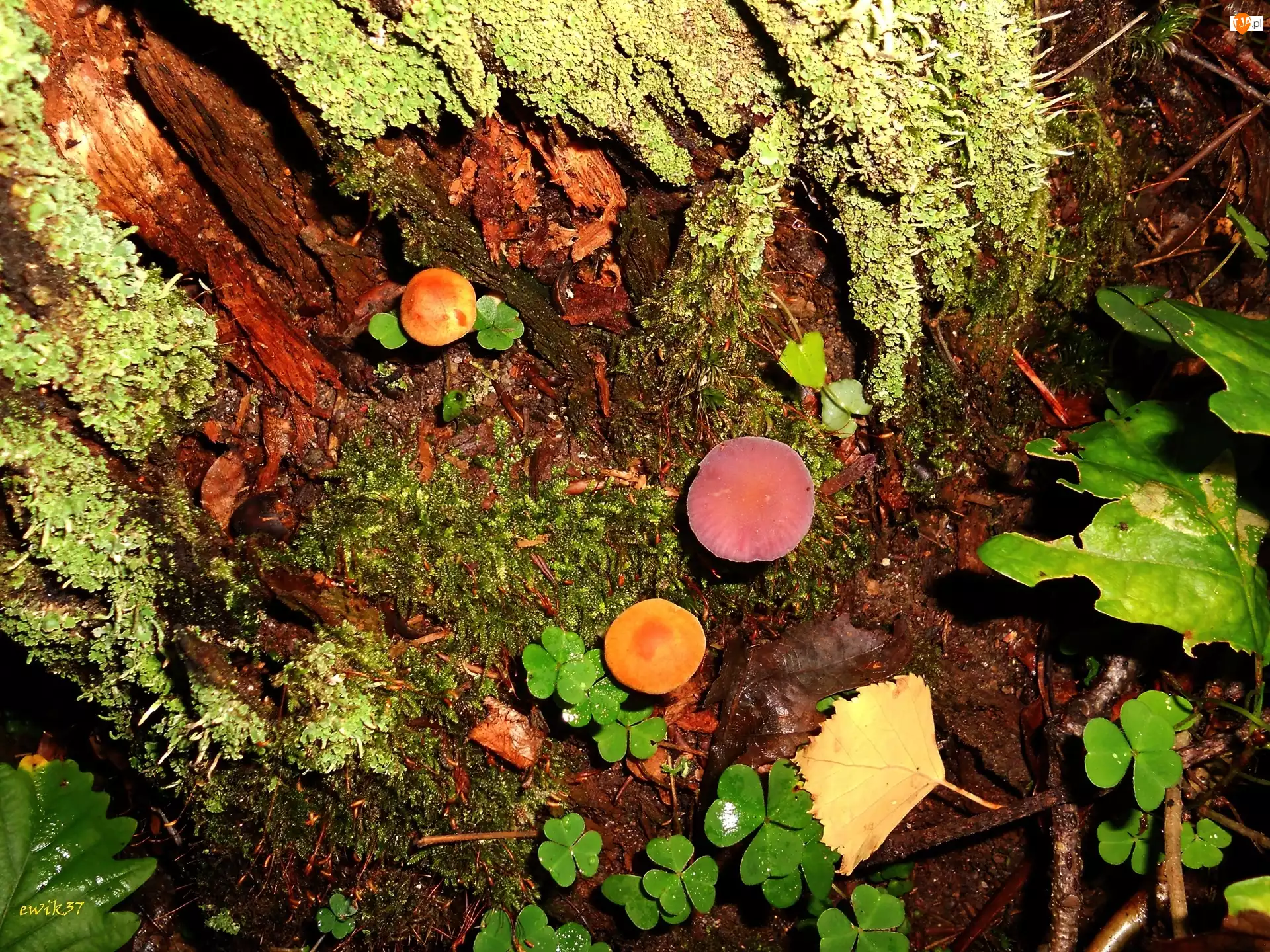 Pień, Grzyby, Las, Liście, Omszały, Różne