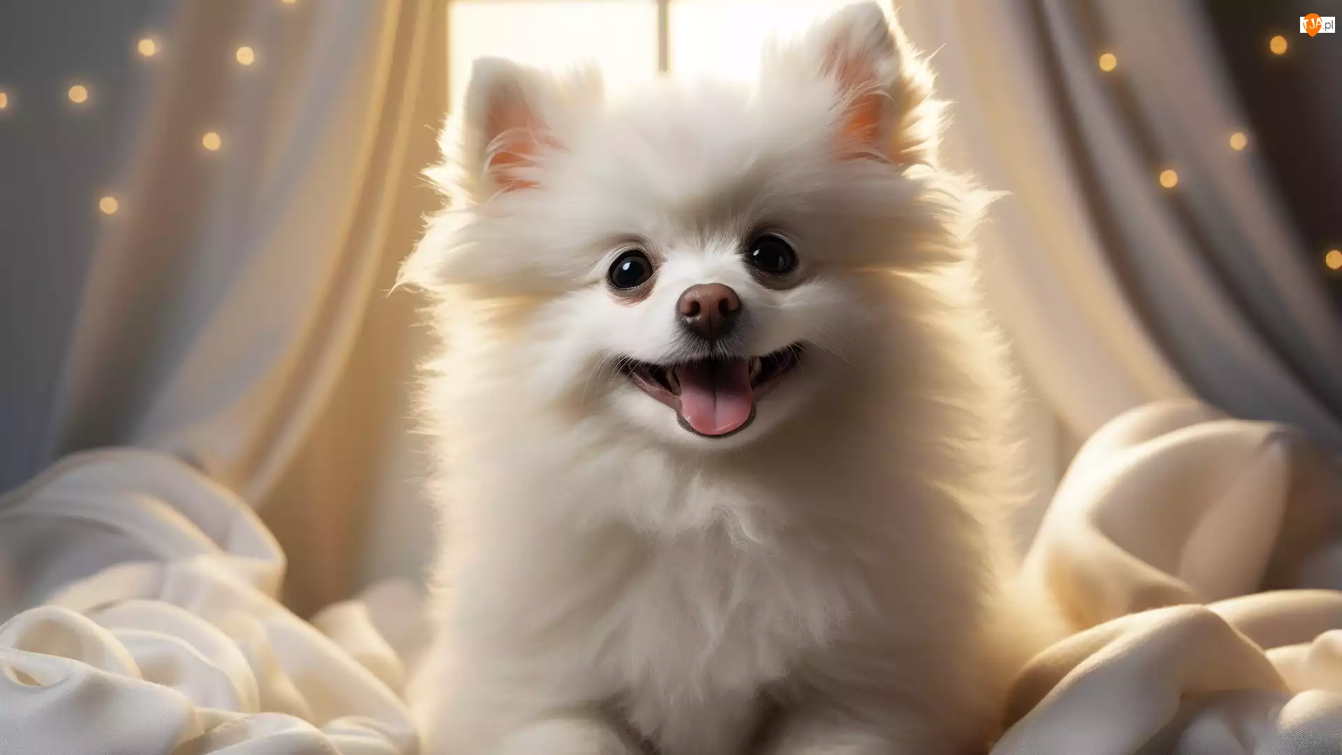 Pies, Biały, Jęzor, Koc, Szpic miniaturowy, Biały