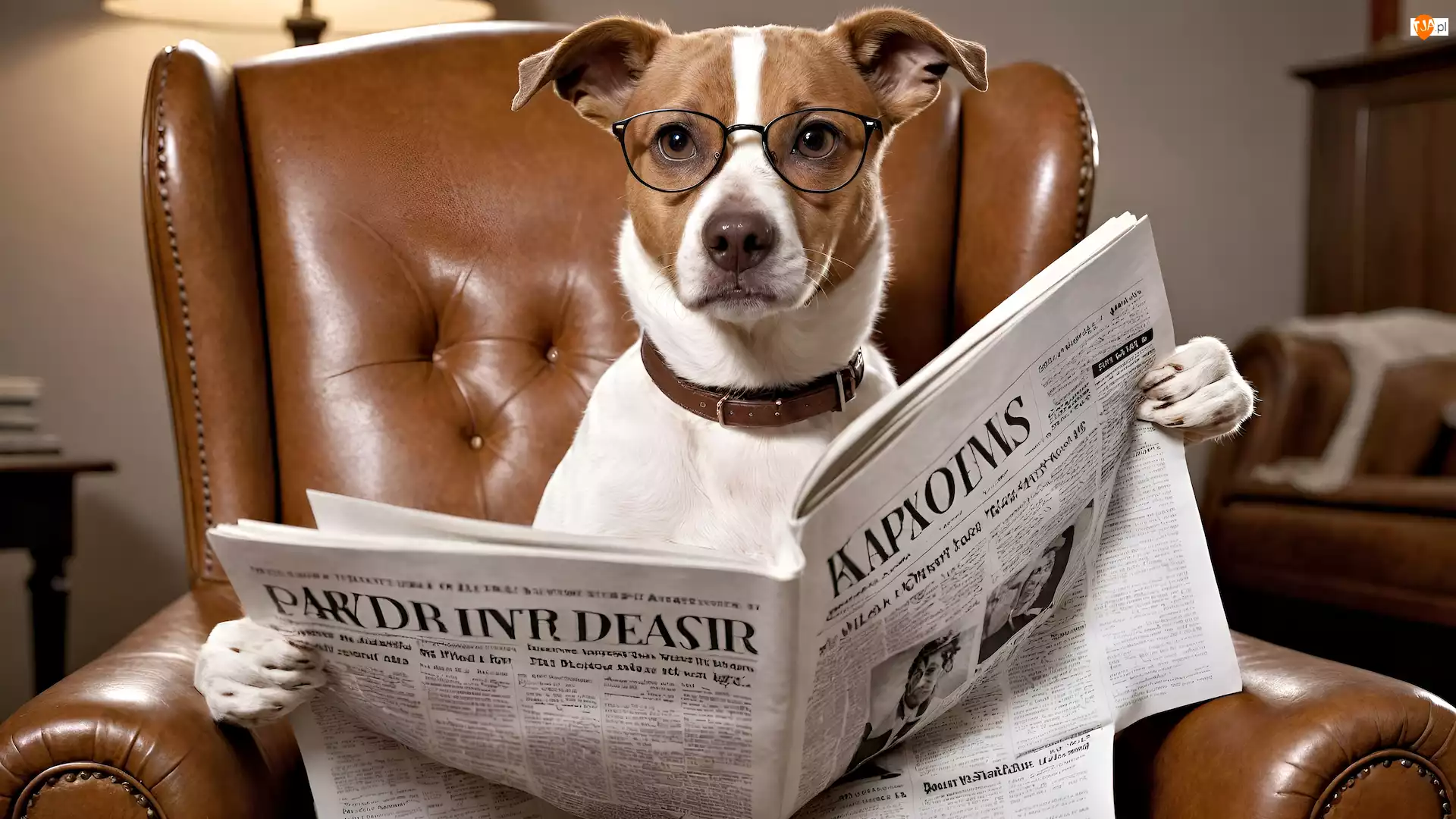 Pies, Grafika, Okulary, Fotel, Jack Russell terrier, Gazeta