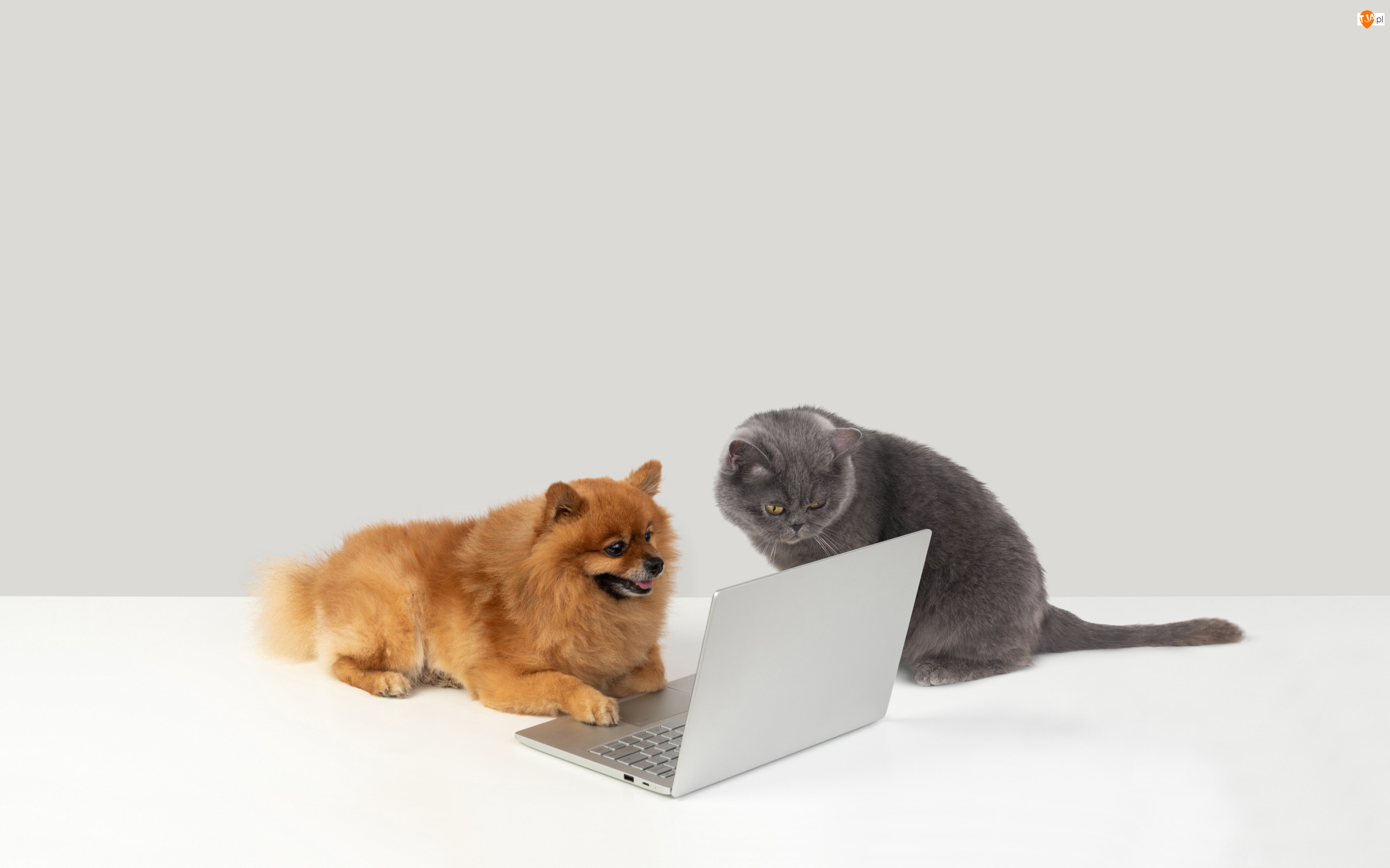 Pies i kot z komputerem