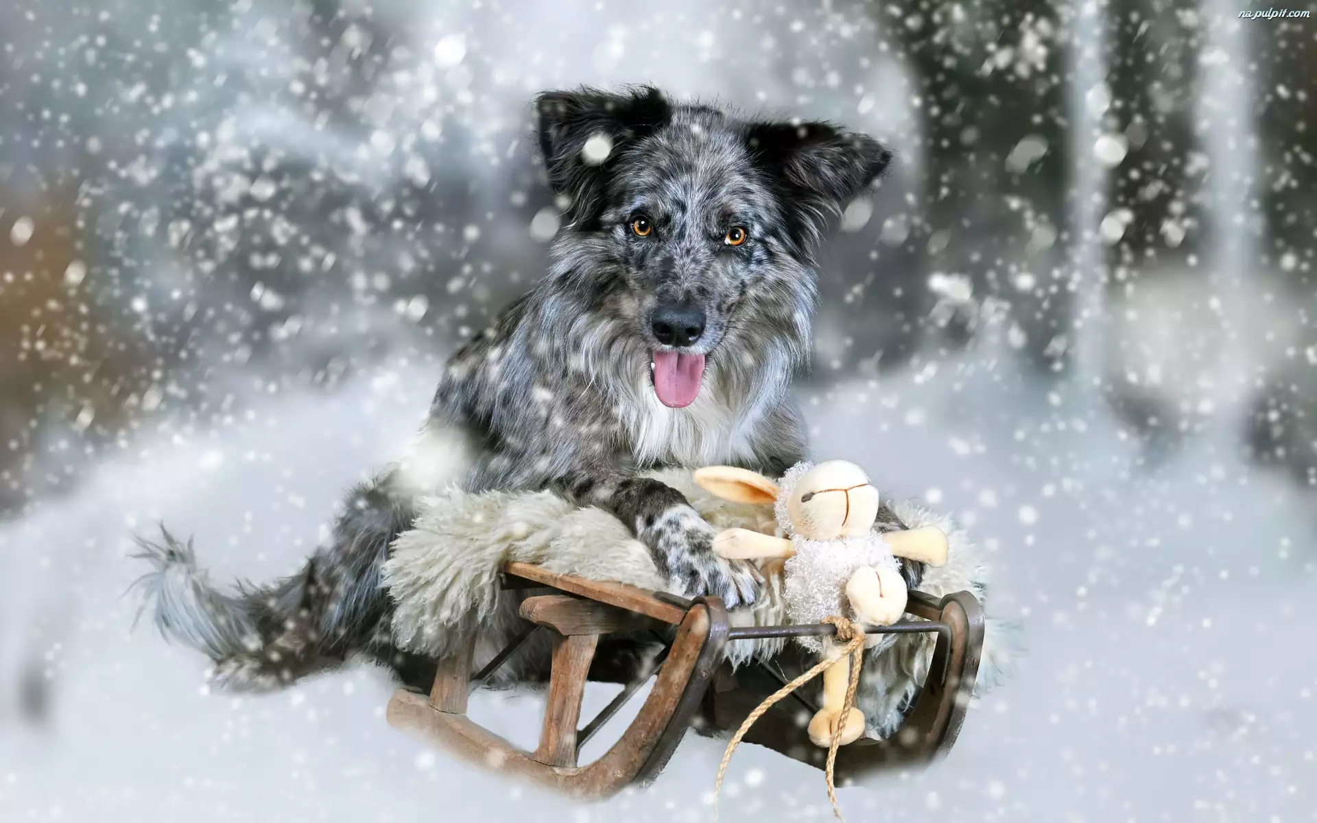 Border collie, Umaszczenie blue merle, Sanki, Pies, Zabawka, Śnieg, Zima