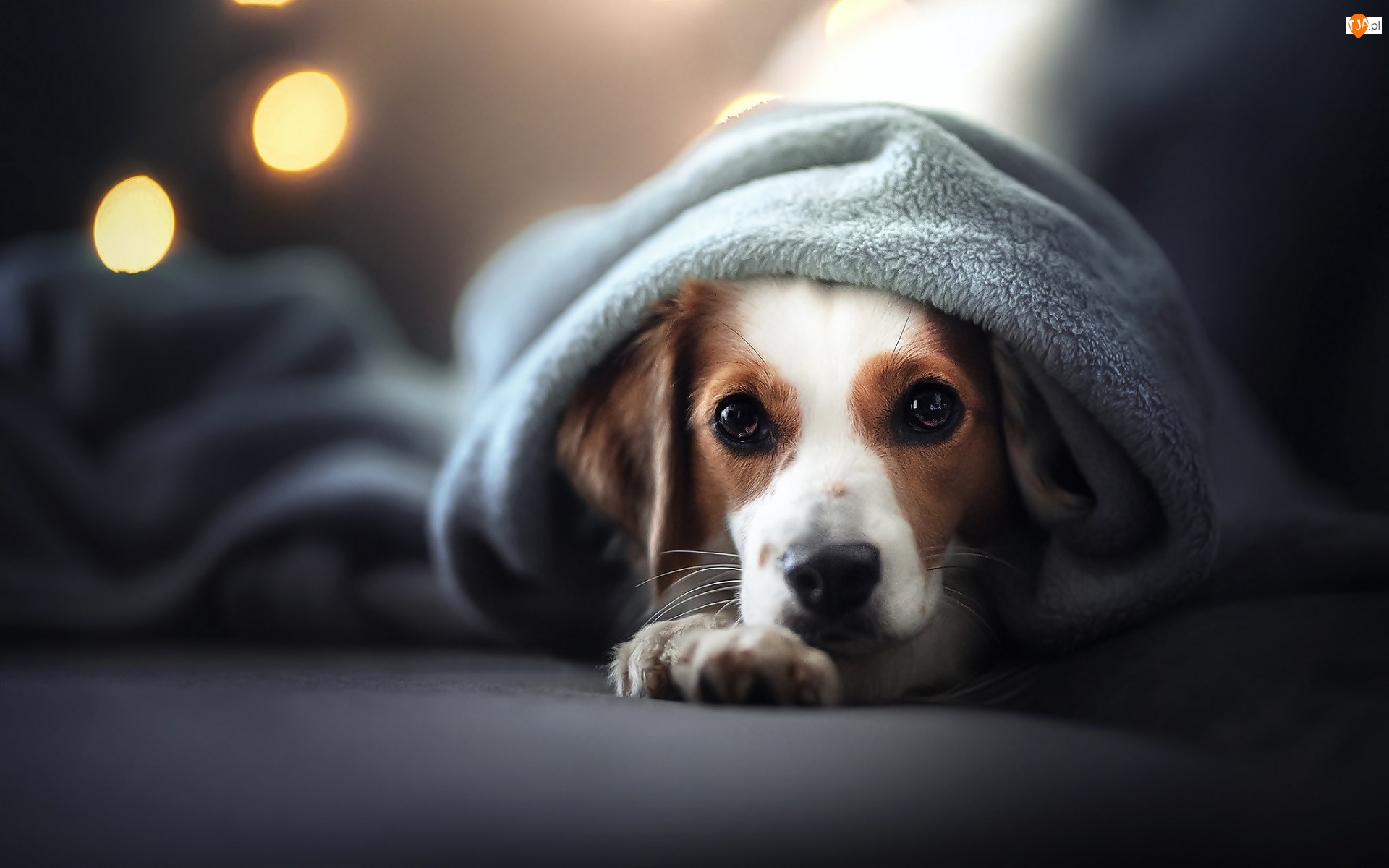 Pies rasy płochacz holenderski okryty kocem