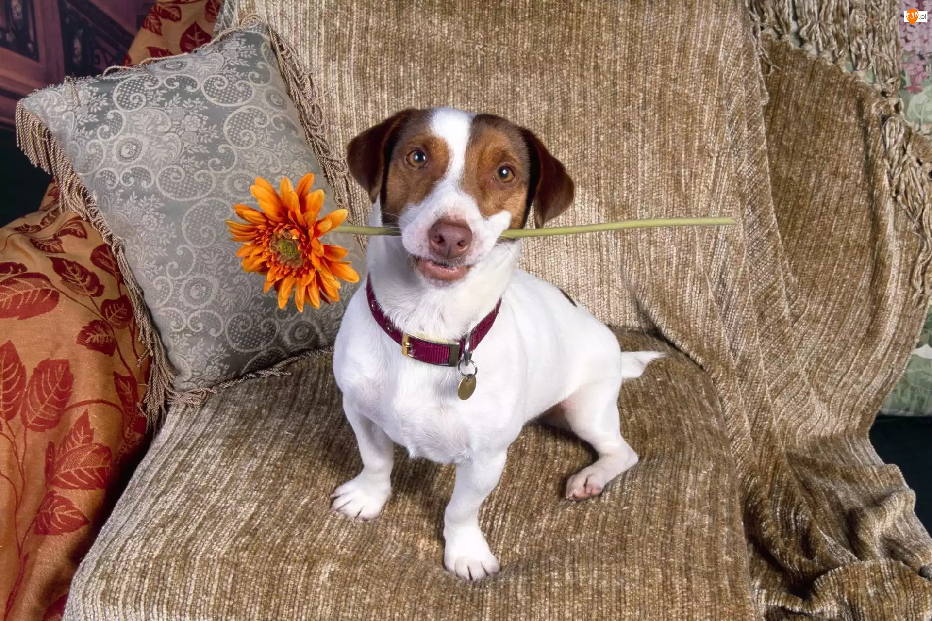 Piesek, Poduszka, Kwiatek, Fotel