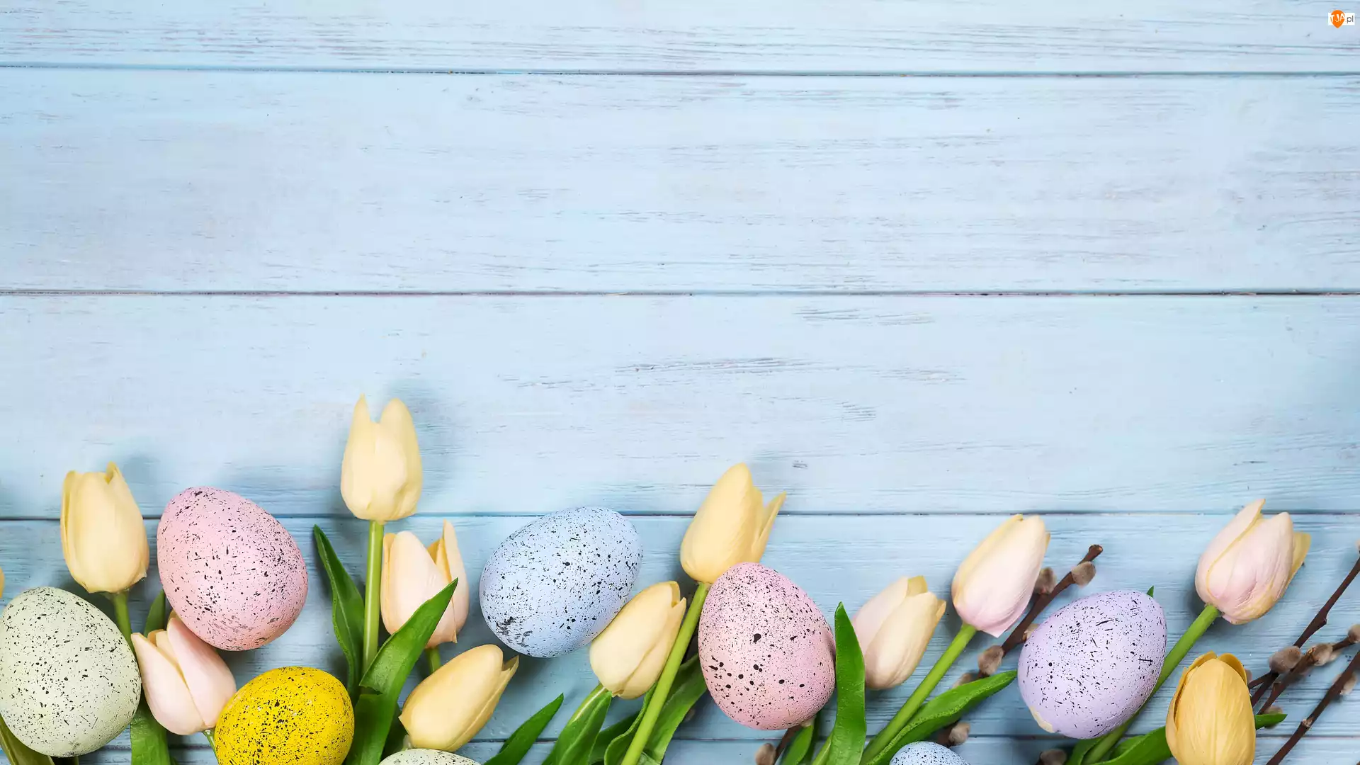 Pisanki, Deski, Tulipany, Wielkanoc, Niebieskie