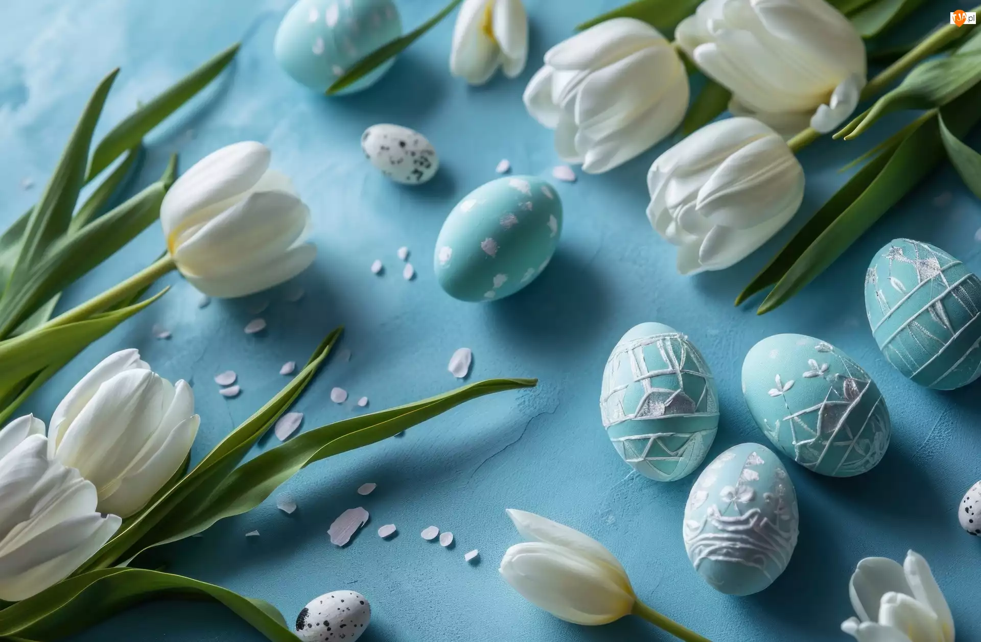 Pisanki, Wielkanoc, Białe, Tulipany
