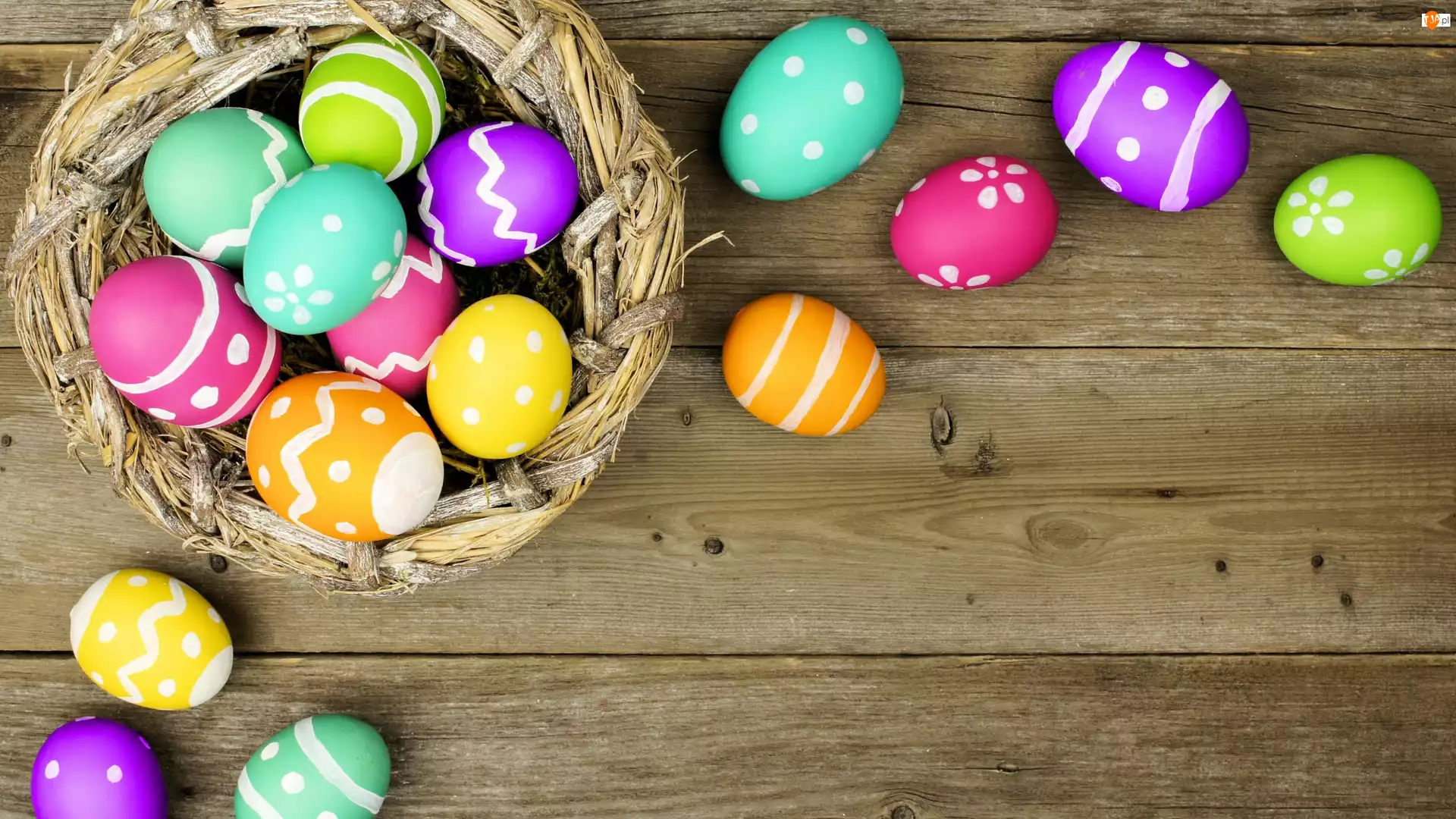 Kolorowe, Deski, Pisanki, Wielkanoc, Koszyk