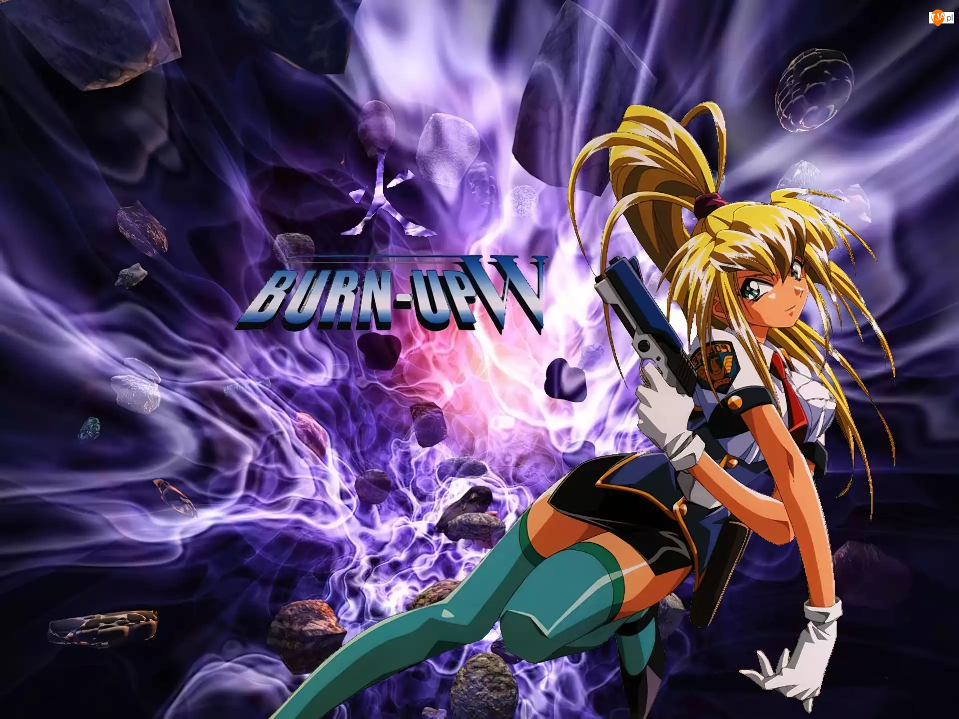 pistolet, Burn Up W, dziewczyna, napis, policjantk