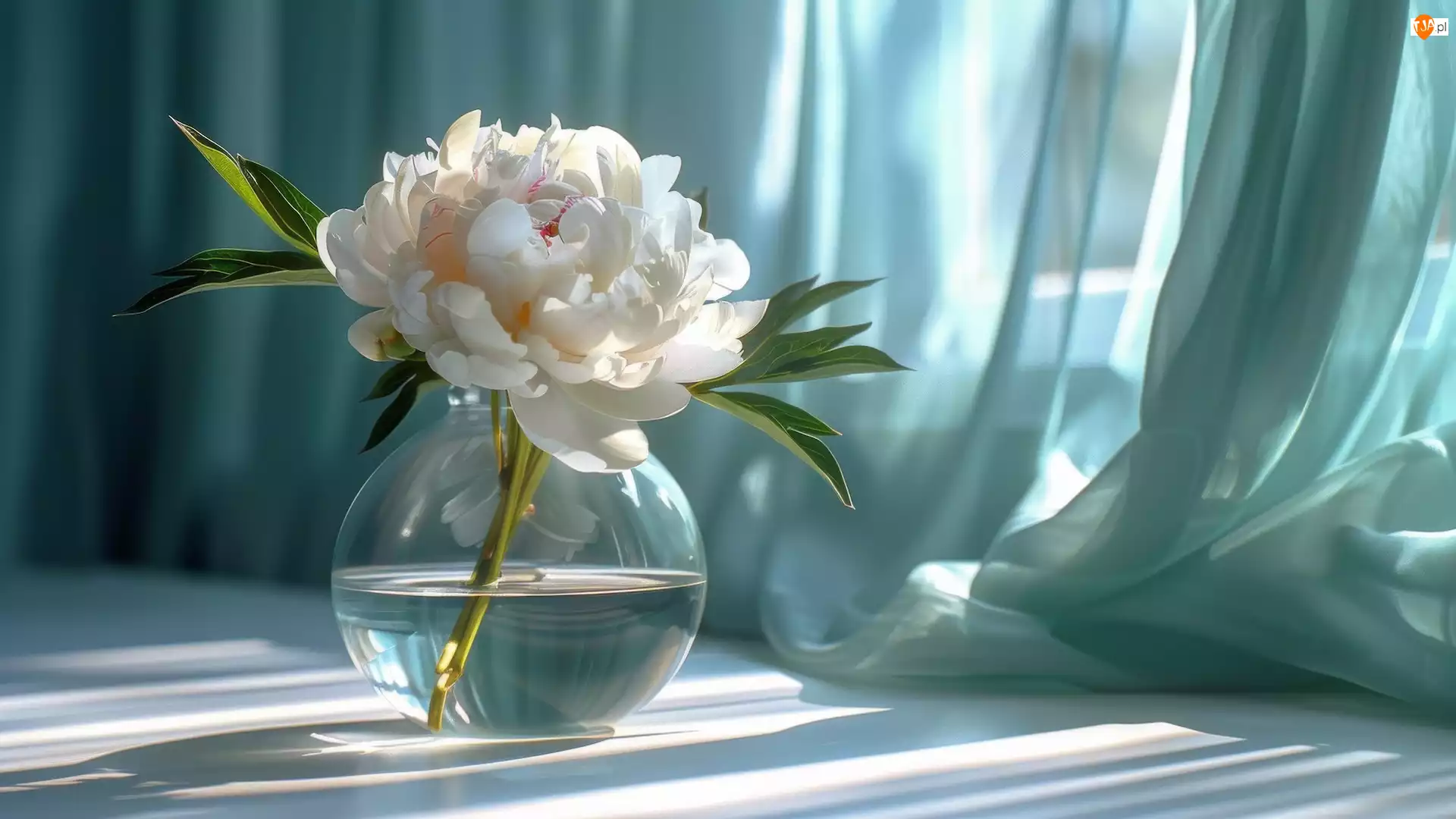 Piwonia, Kwiat, Wazon, Firanka, Biała, Okno