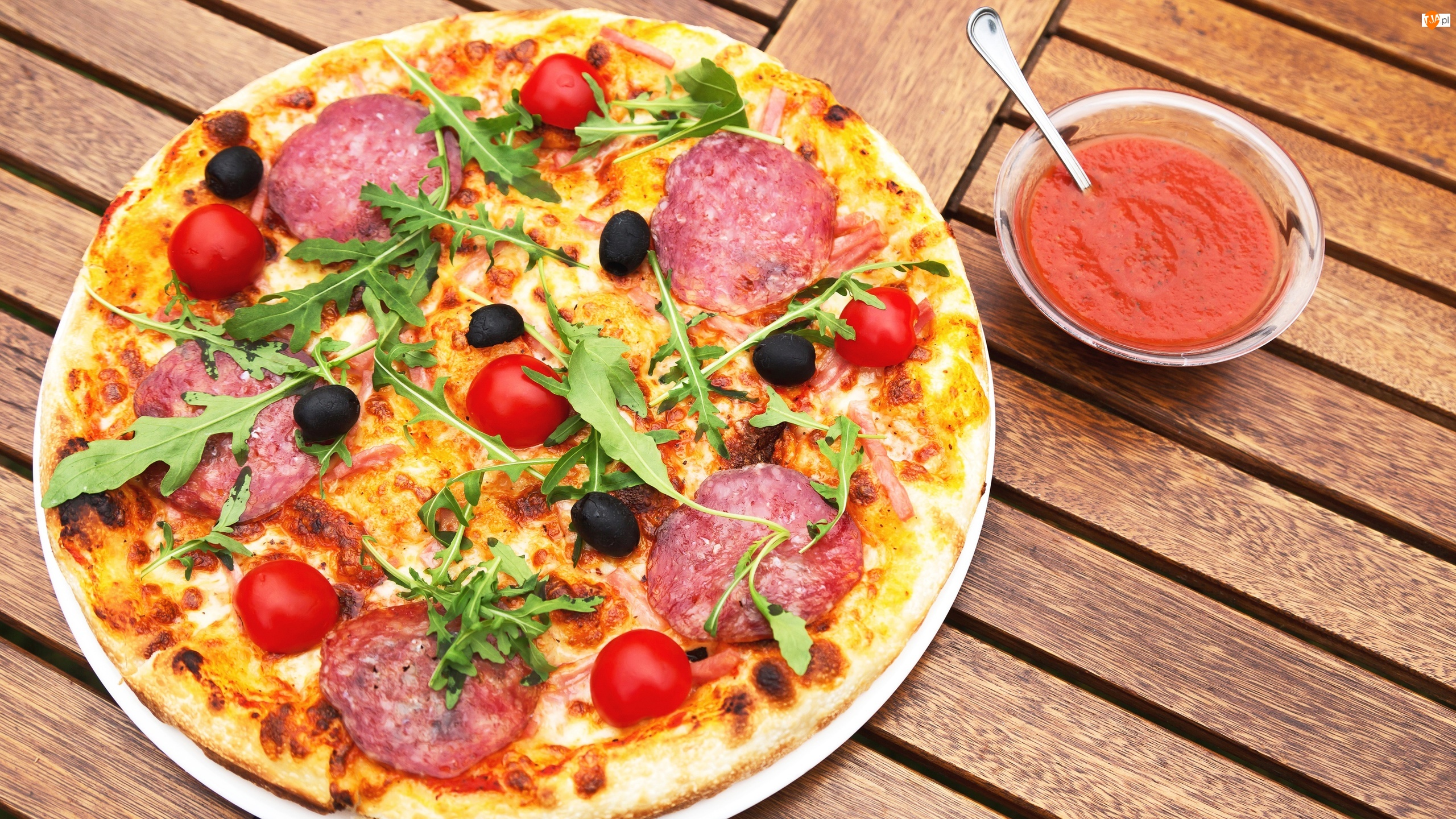 Ketczup, Pizza, Salami, Oliwki