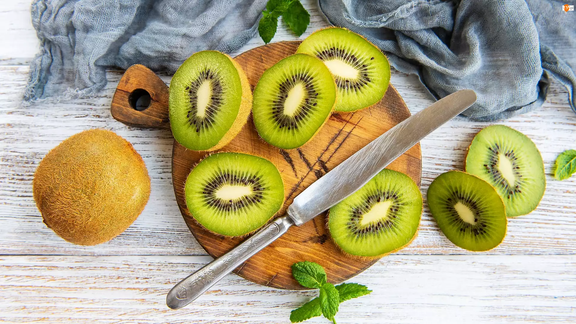 Kiwi, Plastry, Szalik, Owoce, Mięta, Nóż, Deska