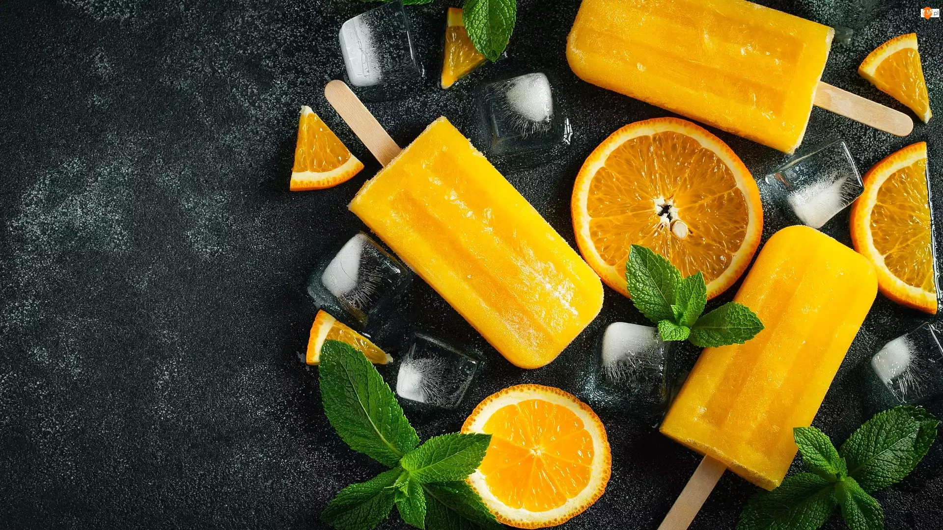 Pomarańcze, Lody, Mięta, Lodu, Plastry, Kostki